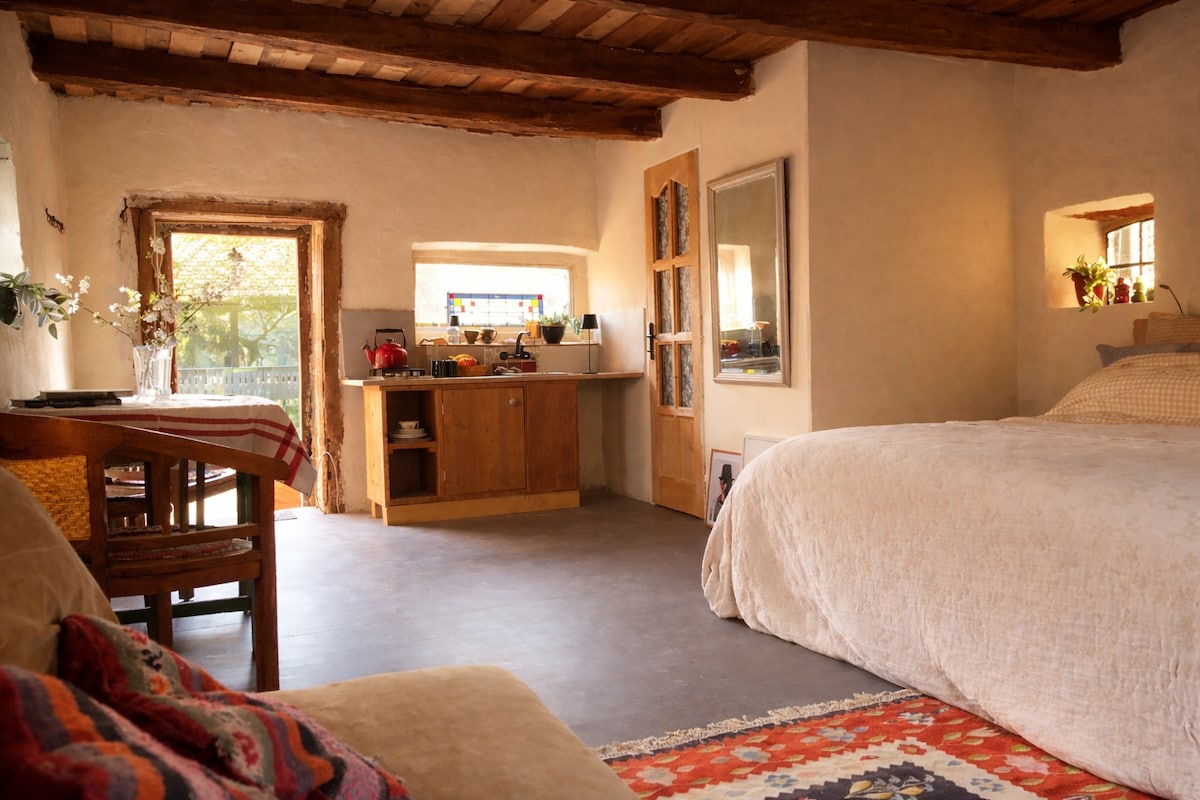 Πρόσφατα ανακαινισμένος και μεταμορφωμένος αχυρώνας, ένας μαγικός χώρος με υπέροχη θέα στα γύρω βουνά και λόφους. Ο αχυρώνας είναι ιδανικός για 2-3 άτομα, αλλά μπορεί να φιλοξενήσει έως 5 άτομα, με ένα διπλό, ένα μονό και έναν καναπέ-κρεβάτι (η πρόσβαση στον χώρο ύπνου απαιτεί σκάλες ή σκάλα). 20 μέτρα από τον αχυρώνα, υπάρχει ξύλο και τζάκι για μια βραδινή κουβέντα και παρατήρηση των αστεριών δίπλα στη φωτιά. Υπάρχει επίσης υπαίθριο ντους με νερό που θερμαίνεται με ηλιακή ενέργεια. Η κουζίνα είναι λειτουργική και έχει εκπληκτική θέα!