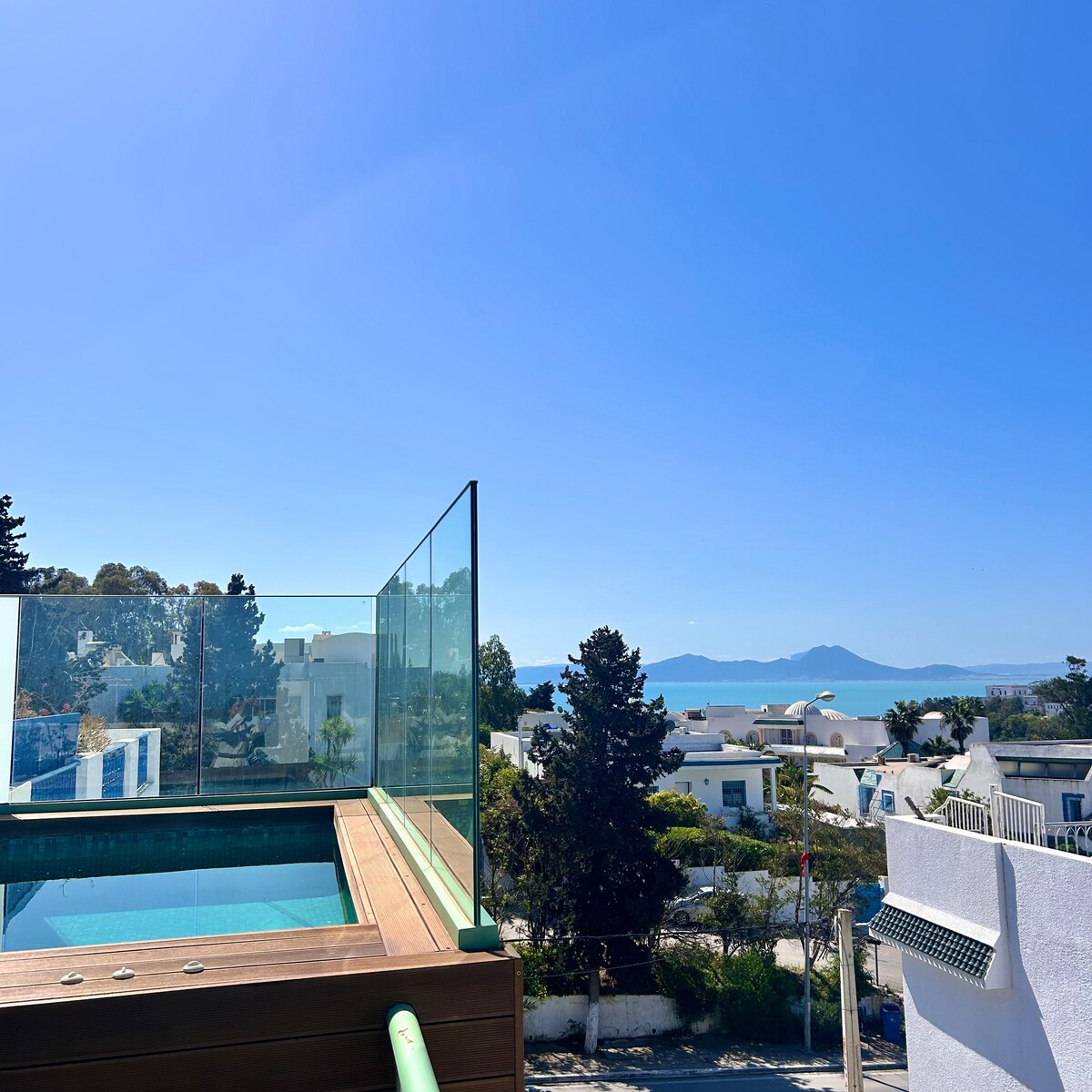 Αυτό το κατάλυμα έχει ένα πραγματικά μοναδικό στιλ. Είναι εξ ολοκλήρου κατασκευασμένο από ξύλο και προσφέρει πανοραμική θέα στο Sidi Bou Said και τις κοντινές πόλεις. Το διαμέρισμα είναι καινούργιο, πολύ άνετο και διαθέτει υπέροχη πανοραμική βεράντα με πισίνα. Βρίσκεται μόλις λίγα λεπτά με τα πόδια από το χωριό, είναι κοντά σε όλες τις ανέσεις. Το υπνοδωμάτιο προσφέρει υπέροχη θέα στην πόλη και τη θάλασσα. Αυτό το κατάλυμα είναι μοναδικό και θα έχετε μια εξαιρετική διαμονή εκεί