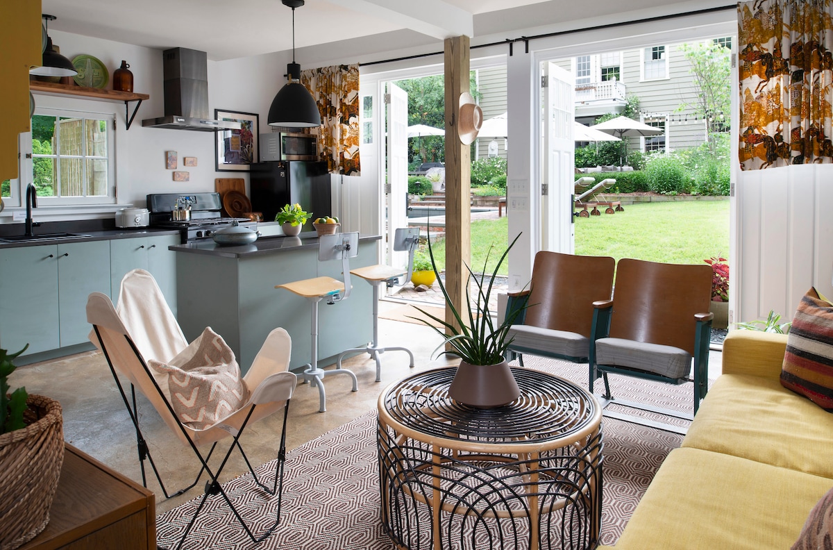 Κρυμμένο στο πίσω μέρος της ιδιοκτησίας μας του 1927 βρίσκεται το The Sidekick, ένας προσεκτικά ανακαινισμένος αμαξοστάσιο που περιβάλλεται από γαλήνια δάση και μεγαλοπρεπή σπίτια. Εν μέρει λέσχη καουμπόηδων, εν μέρει ξεκούραστο καταφύγιο, το The Sidekick είναι μια βολικά τοποθετημένη απόδραση για ζευγάρια, μεμονωμένους ταξιδιώτες ή μικρές ομάδες. Κάντε μια βουτιά στην πισίνα με θαλασσινό νερό, χαλαρώστε στον ώριμο κήπο ή απλά ξεκουραστείτε στα πολυτελή σεντόνια στο γλυκό μικρό υπνοδωμάτιο σοφίτας.