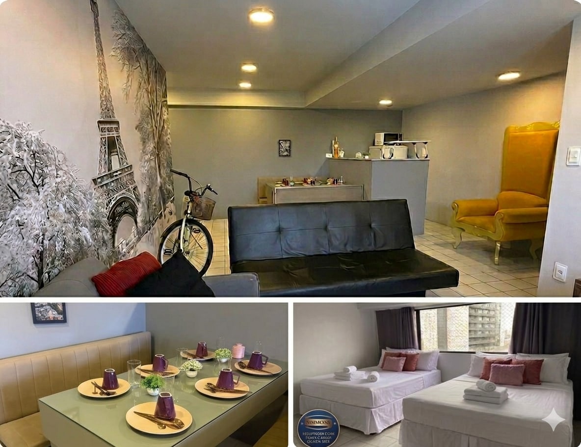 Αυτός ο μοναδικός χώρος έχει το δικό του στυλ. Ιδανικό για όσους πηγαίνουν για δουλειά ή για να απολαύσουν λίγες μέρες στο Ρεσίφε. Εξαιρετική τοποθεσία, κοντά στην παραλία, στα κύρια εμπορικά κέντρα, εστιατόρια, αρτοποιεία, καφετέριες, κλπ. Το διαμέρισμά μας διαθέτει ένα άνετο υπέρδιπλο κρεβάτι και ένα βοηθητικό κρεβάτι. Κλινοσκεπάσματα υψηλής ποιότητας. Τηλεόραση 50'. Διαδίκτυο. Καλά εξοπλισμένη κουζίνα. Ένα άνετο τραπέζι για φαγητό ή για εργασία. Κτίριο με χώρο στάθμευσης, πλυντήριο, συνεργατικό χώρο, γκουρμέ χώρο, πισίνα, υδρομασάζ, γυμναστήριο.