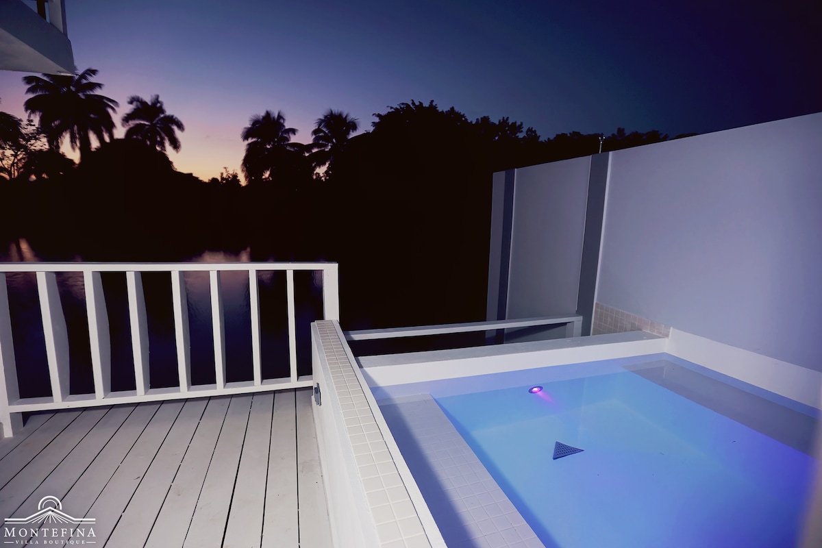 Το MonteFina Villa Boutique είναι στην ευχάριστη θέση να σας παρουσιάσει και να μοιραστεί μαζί σας μια υπέροχη εμπειρία, όπου μπορείτε να φιλοξενήσετε έως και 10 άτομα με άνεση. Βρίσκεται στην όμορφη πόλη του Σαν Σεμπαστιάν, στο Πουέρτο Ρίκο. Πλήρης ύπαιθρος η βίλα μας διαθέτει ένα κύριο υπνοδωμάτιο με ιδιωτικό μπάνιο και άμεση σύνδεση με τη βεράντα μας με εξωτερική πισίνα και μπάνιο. Ο όροφος διαθέτει ένα πλήρως εξοπλισμένο δωμάτιο με μπάνιο και ιδιωτικό Jaccuzi με θέα στη λίμνη μας.