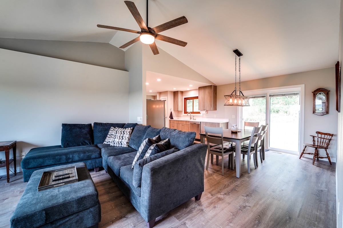 Get away from daily routines & refresh by the Wisconsin River at your private & peaceful retreat located near Devil's Lake, Cascade Ski & Devil's Head Ski/Golf Resorts & WI Dells. Perfect for families w/ 9 beds, 8 person Hot Tub, 6 Kayaks (May-Oct), Ping Pong, Foosball, Darts & Outdoor Games. The modern spacious design is filled w/ natural light, luxury comforts & new furnishings w/ Chef’s Kitchen, Weber Grill, Fireplace & Solo Stove. Ask us about nearby River Islands or day trips to ski/hike.