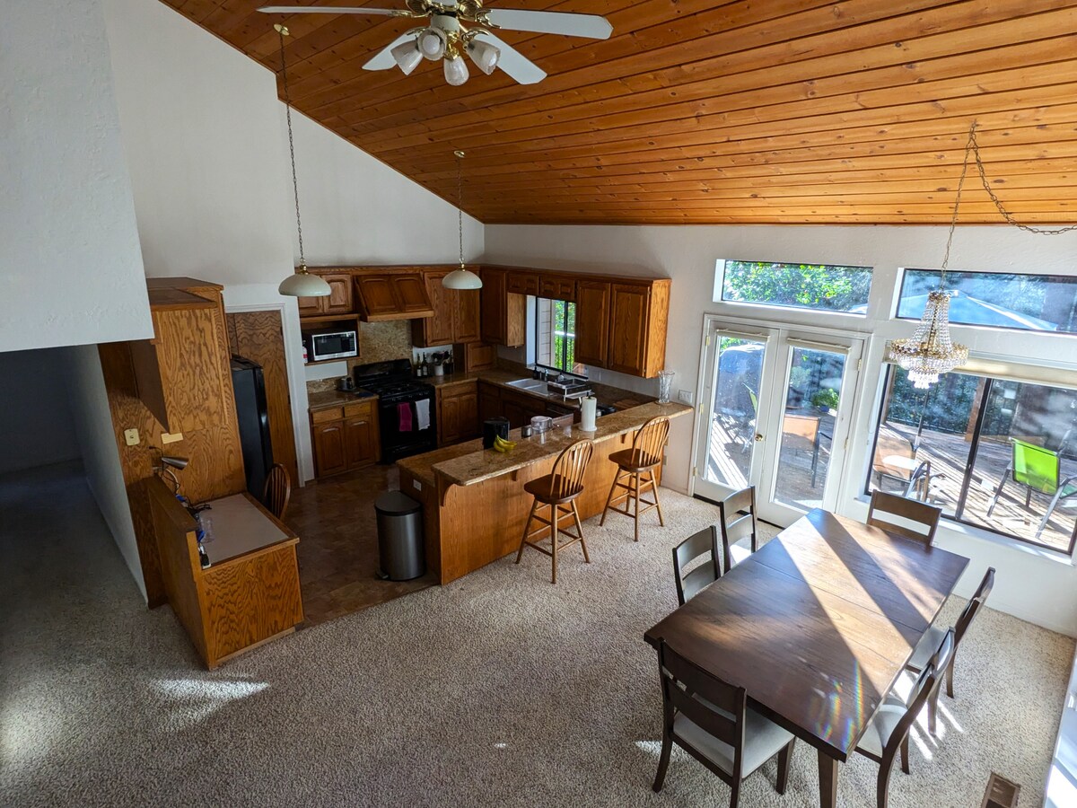 Αφήστε πίσω κάθε έγνοια με αυτό το ευρύχωρο και γαλήνιο σπίτι. Πρόσφατα ανακαινισμένο σπίτι 1200 τετραγωνικών ποδιών με 2 υπνοδωμάτια και 2 μπάνια, φωλιασμένο ανάμεσα σε μεγάλα πεύκα, κέδρους και βελανιδιές. Βρίσκεται σε μια κλειστή γειτονιά ανάμεσα σε δύο γραφικές πόλεις του χρυσού με ψώνια, οινογνωσία, μονοπάτια πεζοπορίας και αξιοθέατα. Εύκολα προσβάσιμες περιοχές για σκι για ημερήσια ταξίδια. Ξεκουραστείτε ή δειπνήστε στη βεράντα με ένα ποτήρι τοπικό κρασί και παρακολουθήστε τα φιλικά ελάφια να περπατούν, μερικές φορές σταματώντας για να πούνε ένα γεια.