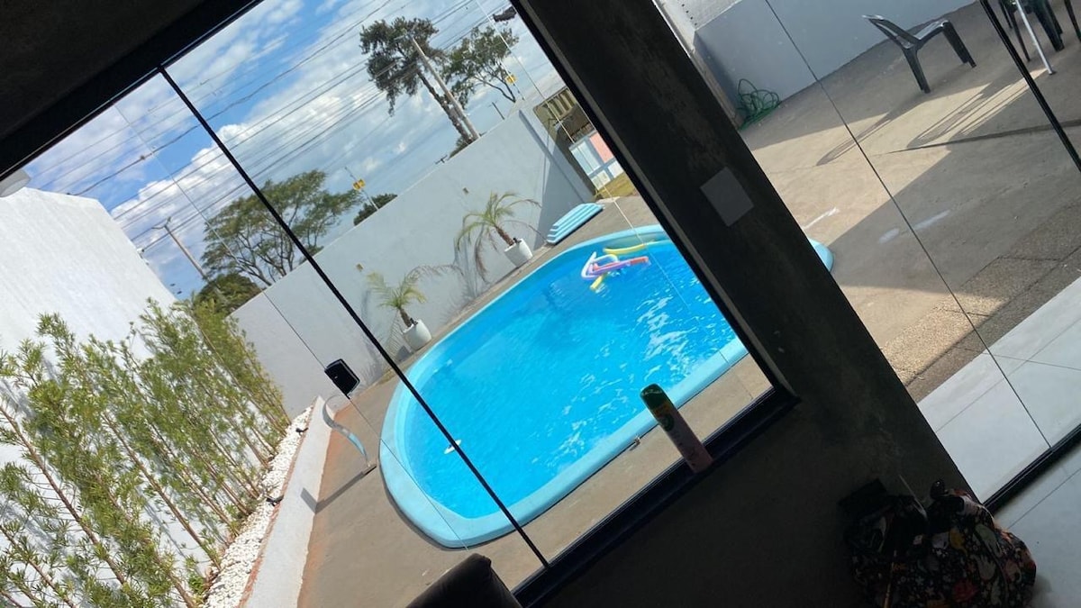 Sobrado em área nobre de Cascavel, central 1 suíte e 2 quartos (ar condicionado e tv em todos) Casa toda equipada Área gourmet completa Piscina aquecida (nos meses de junho, julho e agosto o aquecedor da piscina fica desligado, por conta das baixas temperaturas na cidade, por se tratar de uma piscina aquecida e não térmica, a temperatura externa não pode estar tão baixa).