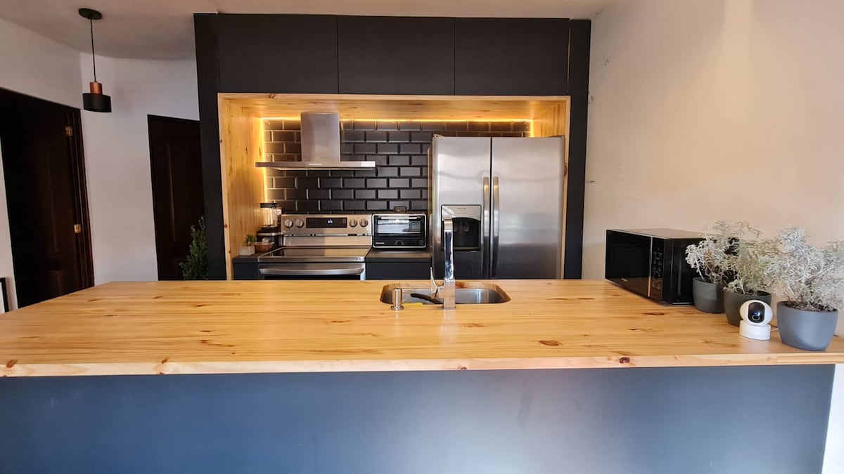 Enjoy a spectacular view of the volcanoes from your private balcony in this cozy, modern studio. It’s fully equipped with high-quality amenities, from a comfy queen-size bed to a handy sofa bed for extra guests. With a fully equipped kitchen, and black out curtains, you’ll have everything you need for a relaxed and fun stay. It includes one parking space, on-site gym and access to the building’s convenience store. Just 8 minutes from the airport is the perfect place for you and your beloved