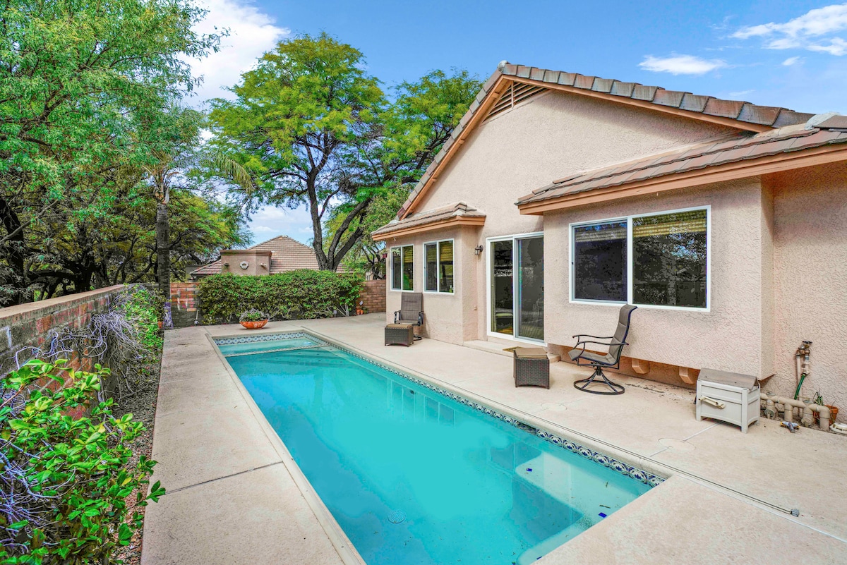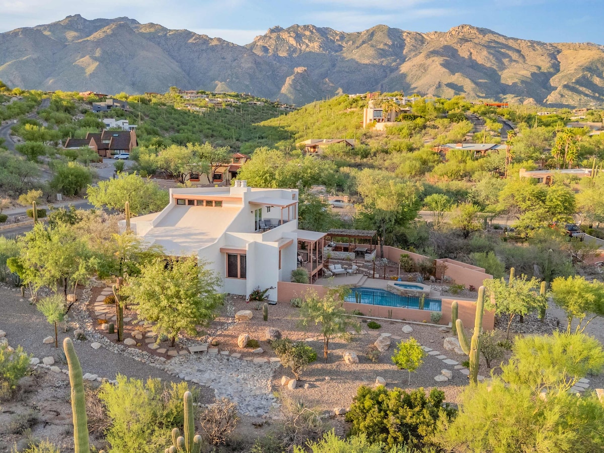 Rejuvenate in the only home in the neighborhood what provides undisrupted views to Cathalina mountains and the entire city of Tucson! This home offers sustainable living, with a fully indoor/outdoor connection, swimming pool, hot tub and amazing privacy! The light, airy home features open-plan living and over sized windows to maximize the breathtaking views. Enjoy drinks on the patio and a sunset. In the evening, light a fire in the outdoor fireplace and relax in a lounge chair under the stars.