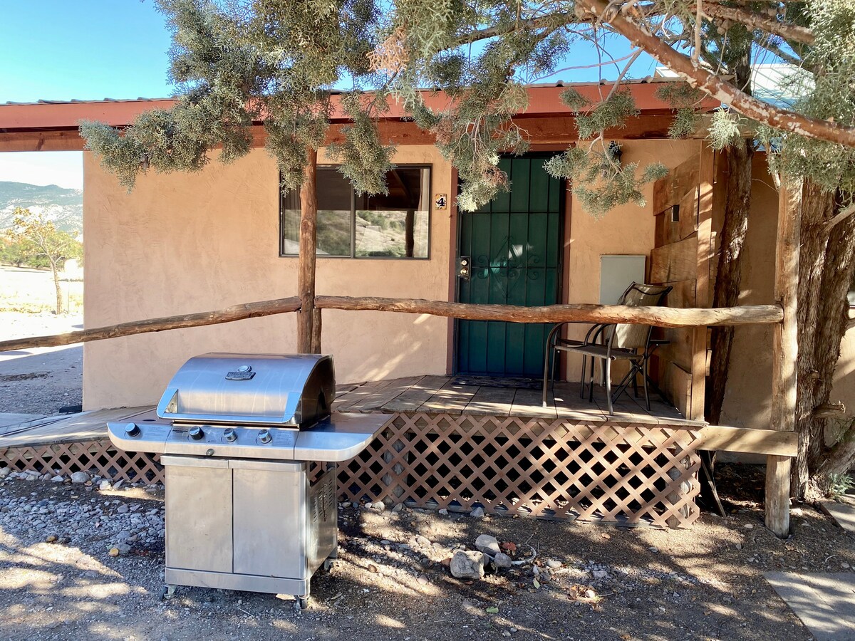 This spacious newly remodeled 2 bedroom, 700+ sq ft stucco casita is surrounded by the Gila Wilderness. Enjoy plenty of room for your family to spread out and enjoy your vacation. The large kitchen has a full-size refrigerator, oven/stove, microwave, toaster, and coffeepot. The kitchen comes equipped with glassware, dishes, pots, and pans. Basic seasonings, coffee, creamer, sugar, and cooking oil are provided for your use while staying with us. An extra cot available.