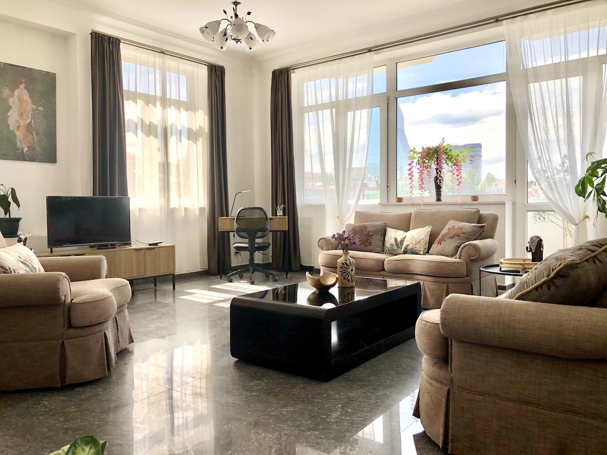 Explore the city from the most coveted address of Tbilisi! Enjoy the private terrace with fantastic views of all major landmarks: Opera★ Narikala Fortress★Sameba★Kazbegi mountains★ Feel the pulse of the main artery of Tbilisi, Rustaveli avenue. Located in a historic part, steps to Rustaveli avenue, opposite Marriott Hotel, in A-class building with reception, elevators, 24h security & cameras. Perfect for business/holiday travelers. Self check-in anytime!