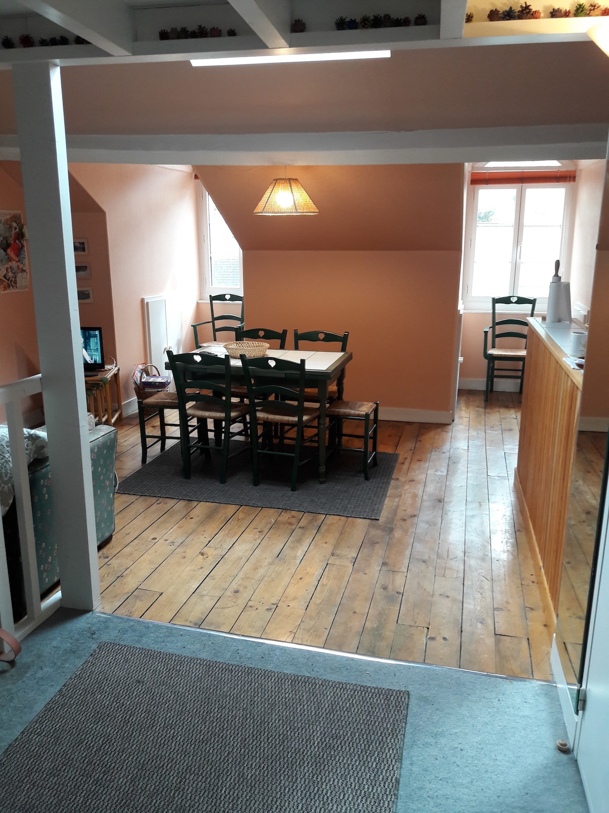 Διαμέρισμα 100% άνετο, που βρίσκεται στον δεύτερο όροφο μιας μικρής κατοικίας. Ήσυχη τοποθεσία ενώ βρίσκεται στην καρδιά του χωριού, με μεγάλο μη ιδιωτικό χώρο στάθμευσης. Μια ζεστή φωλιά 35 τ.μ. για 4 άτομα, ζεστή και εκλεπτυσμένη. 100 τ.μ. βεράντα και ιδιωτικός κήπος. Κρεβάτια: 1 υπνοδωμάτιο με κρεβάτι 140x190 και μεγάλο ντουλάπι, καναπές-κρεβάτι με πραγματικό στρώμα 140x190 Κρεβάτια στρωμένα κατά την άφιξη. Πλήρως εξοπλισμένη κουζίνα. Μπάνιο με ντους, ξεχωριστή τουαλέτα. Παρέχονται πετσέτες μπάνιου.