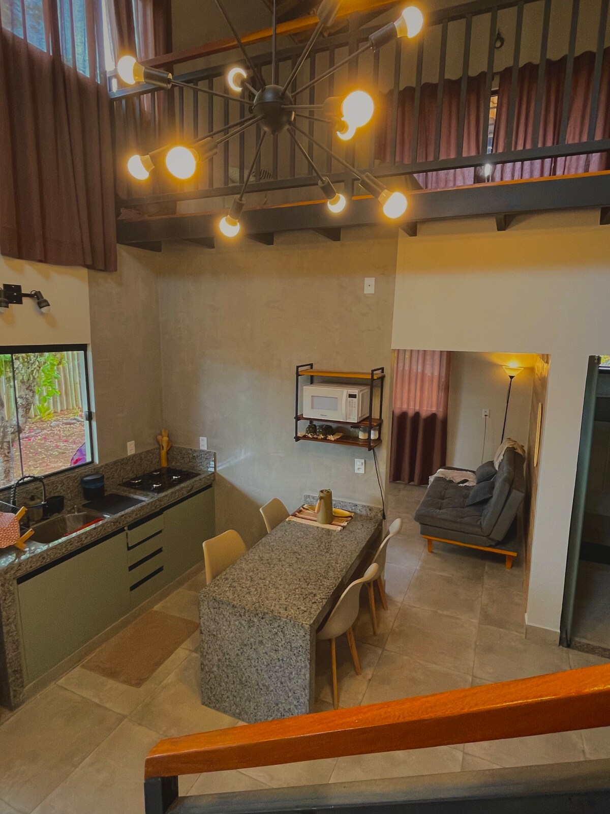 Το σαλέ μας είναι πλήρως ενσωματωμένο στη φύση. Έχει μεγάλα γυάλινα πλαίσια και δωρεάν θέα στο Cerrado και τα βουνά που προσφέρουν εντυπωσιακή θέα. Πλήρης κουζίνα, κορυφαία σεντόνια και κλινοσκεπάσματα μπάνιου, υπέροχο θερμαινόμενο ντους, ντουλάπα και κρεβάτι με στρώμα ξενοδοχείου 5 αστέρων. Υπάρχει μπαλκόνι με βεράντα σε όλο το μήκος του σαλέ ,με τραπέζι και καρέκλες έξω, ώστε οι επισκέπτες να μπορούν να μελετήσουν τη φύση και τον έναστρο ουρανό της Chapada - να πιουν ένα κρασί, φυσικά. =)