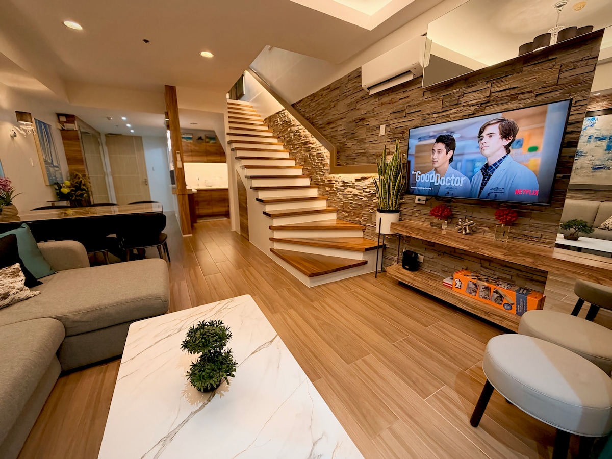 Welcome to our newly renovated 2BR luxury loft at Pico de Loro, located on the ground floor of Carola A Condominium—perfect for families and groups seeking comfort, space, and a relaxing resort escape. This spacious loft-type unit offers serene views of the lagoon, forest, and surrounding mountains, creating a calm and refreshing atmosphere throughout your stay. The unit can comfortably accommodate up to 9 guests and is thoughtfully equipped to make you feel right at home.