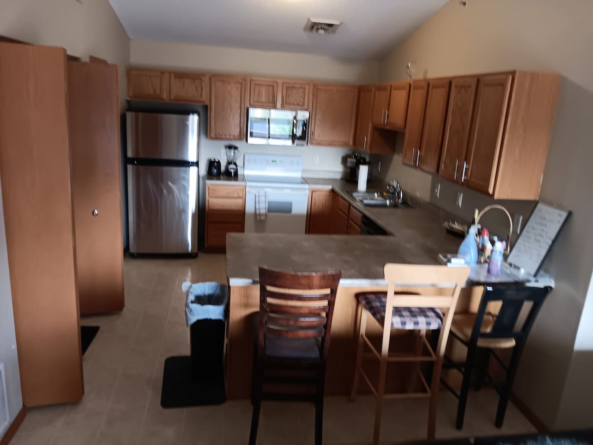 Η μονάδα 2ου ορόφου είναι 900 τετραγωνικά πόδια στο ήσυχο τμήμα του North Liberty. Λίγα λεπτά με το αυτοκίνητο από το hwy 965 με τόνους από εστιατόρια, βενζινάδικα και γρήγορο φαγητό. 2 λεπτά από το hwy 380 και 5 λεπτά από το I80. 10 λεπτά από την περιοχή του εμπορικού κέντρου Coral Ridge. 8 μίλια από το στάδιο Kinnick και τα νοσοκομεία Univ. 10 λεπτά από το αεροδρόμιο Cedar rapids-15 λεπτά από το Cedar rapids. 9 μίλια από την πόλη της Αϊόβα και 6 λεπτά από το Coralville. Μονοπάτια για περπάτημα/ποδηλασία σε κοντινή απόσταση. κατοικίδια επιπλέον 35 δολάρια ανά χρέωση κατοικίδιου -35,00 χρέωση κλειδώματος ή απώλεια κλειδιών,wifi -yes