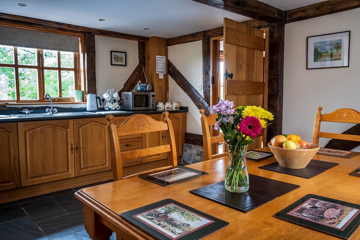 Unwind in the tranquil surroundings of our mid Wales smallholding with wonderful views over the surrounding countryside and dark skies at night. Privately situated, specious timber-frame barn with its own private dog-secure garden. An ideal base from which to enjoy the local museums, pubs, historic sites and countryside in this less-discovered part of Wales, or venture to Snowdonia and the coast - all within comfortable driving distance. Can be booked with Y Beudy, across the yard, to sleep 8.