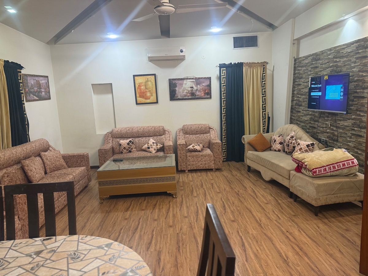 Αυτό το κομψό οικογενειακό κατάλυμα 4 υπνοδωματίων βρίσκεται στο κεντρικό G-9 του Ισλαμαμπάντ και προσφέρει άνεση, ιδιωτικότητα και ευκολία. Διαθέτει μοντέρνα κουζίνα, φωτεινό σαλόνι, πλήρη κλιματισμό και άψογο εσωτερικό με φρεσκοπλυμένα σεντόνια και πεντακάθαρα μπάνια, είναι ιδανικό για οικογένειες ή επαγγελματίες επισκέπτες. Απολαύστε μια ήσυχη και ασφαλή διαμονή με ασφάλεια 24 ώρες το 24-ωρο, άφθονο χώρο στάθμευσης και εύκολη πρόσβαση σε αγορές, εμπορικά κέντρα και αξιοθέατα. Ένα πραγματικό σπίτι μακριά από το σπίτι, γαλήνιο, καθαρό και σε ιδανική τοποθεσία στην καρδιά του Ισλαμαμπάντ