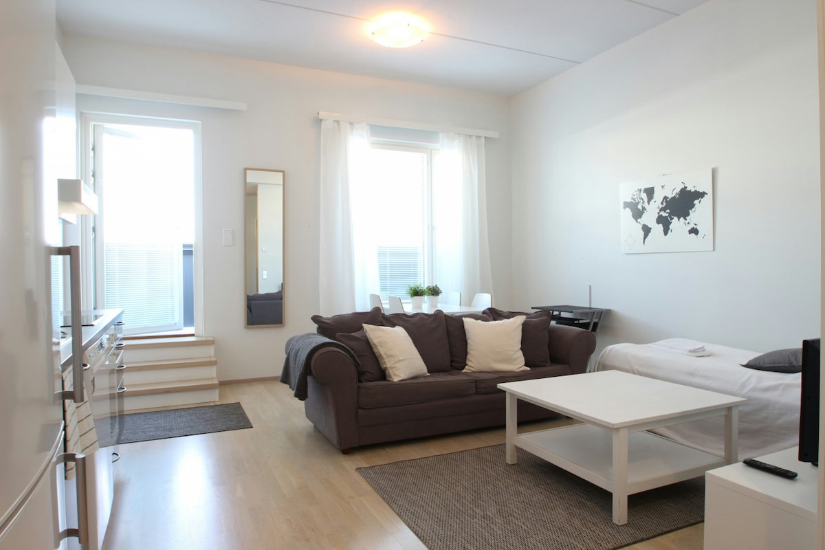 Modern 2-room apartment in central Jyväskylä, completed in 2017. Features a private sauna, rooftop terrace, and full amenities including Wi-Fi, dishwasher, washing machine, and more. Ideal for families, business travelers, or holidaymakers.