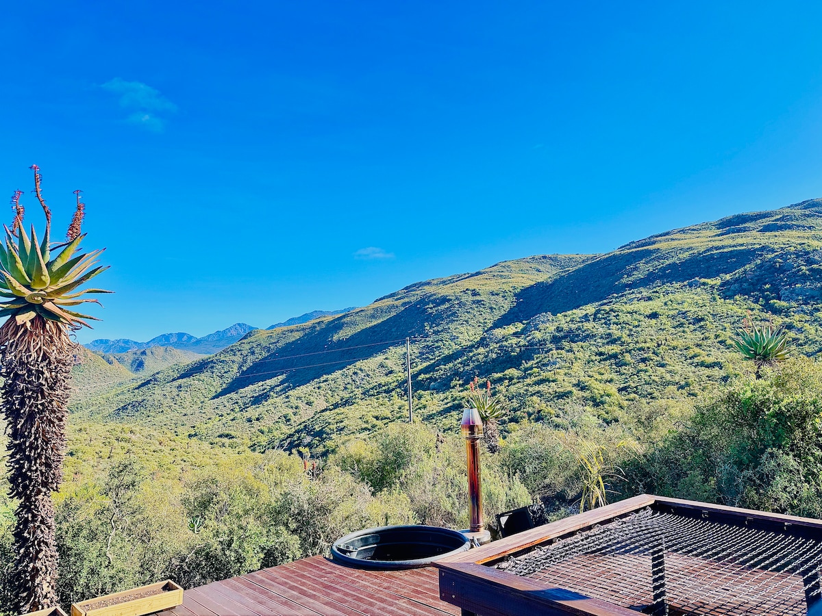 🌵 The Cactus Deck 🌵 *Υδρομασάζ με ξύλα, τζάκι, υπερυψωμένος χώρος χαλάρωσης στη βεράντα, θέα Αποδράστε στο Karoo και απολαύστε τη γαλήνη και τη θέα στο βουνό. Χαλαρώστε στο τζακούζι με ξύλα, μαζευτείτε γύρω από το τζάκι ή παρακολουθήστε το ηλιοβασίλεμα από τη βεράντα. Τα ζεστά απογεύματα, αποδράστε στη σκιερή πίσω βεράντα, ένα ιδανικό σημείο για να δροσιστείτε από τον καυτό ήλιο του Karoo και, στη συνέχεια, απολαύστε ένα μπάρμπεκιου ή δείπνο στην εσωτερική τραπεζαρία. Ένα άνετο δίχτυ για χαλάρωση κάτω από τον ανοιχτό ουρανό που ολοκληρώνει αυτό το γαλήνιο καταφύγιο.