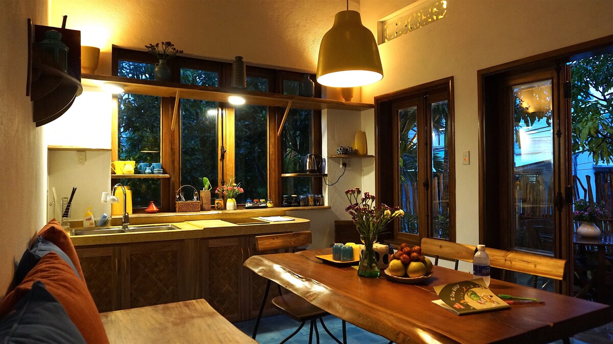 Το σπίτι μας είναι ένα όμορφα ανακαινισμένο σπίτι στην κορυφή μιας κορυφογραμμής με υπέροχη θέα σε μια δασική κοιλάδα στη μέση της πόλης, λιγότερο από δύο χιλιόμετρα από τη λίμνη Ho Xuan Huong. Υπάρχει μια πλήρως εξοπλισμένη, φωτεινή και ανοιχτή κουζίνα για οικογενειακά δείπνα και μια βιβλιοθήκη με άνετα παγκάκια κρυμμένα κάτω από παράθυρα όπου μπορείτε να περάσετε ένα τεμπέλικο απόγευμα με ένα καλό βιβλίο. Στον κάτω όροφο υπάρχουν δύο πλήρη υπνοδωμάτια και τέσσερις άνετες, ενσωματωμένες κουκέτες και ένα ευρύχωρο μπάνιο με μια τεράστια μπανιέρα με πόδια για μεγάλα ζεστά μπάνια.