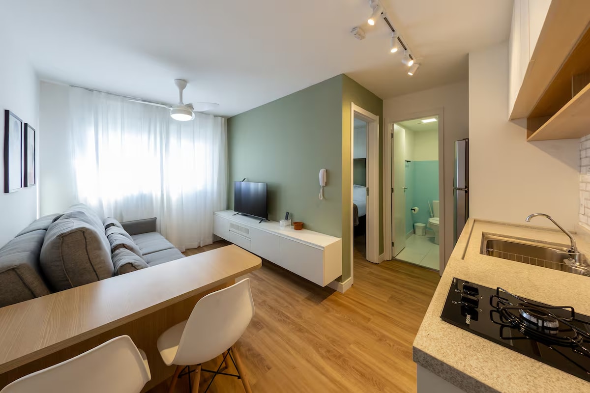 Κομψό διαμέρισμα 50 τ.μ. που βρίσκεται στη Bela Vista, έχει 24ωρο θυρωρό. 2 υπνοδωμάτια (μόνο 1 με κλιματισμό και διπλό κρεβάτι, το δεύτερο είναι αρκετά μικρό και μπορεί να χρησιμοποιηθεί ως γραφείο, χωράει έναν διπλό καναπέ-κρεβάτι) και 1 μπάνιο. Με εκπληκτική θέα από κάθε παράθυρο, είναι ένα εξαιρετικό μέρος για να εργαστείτε και να χαλαρώσετε. Το ιδιωτικό τζετ-τύμπανο στο μπαλκόνι είναι ένα φανταστικό σημείο για να απολαύσετε τη θέα στην πόλη. Ιδανικό για ζευγάρια, επαγγελματίες ή μικρές οικογένειες που αναζητούν άνεση, ευκολία και μία από τις καλύτερες θέες στην πόλη.