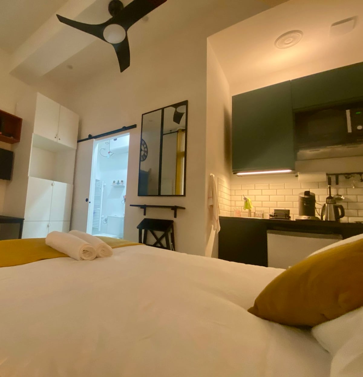 Ανακαινισμένο και άνετο στούντιο στην καρδιά του Μονπελιέ, σε έναν ήσυχο δρόμο στο Écusson, 2 λεπτά από την εκκλησία της Αγίας Άννας. Ιδανικό για Σαββατοκύριακο, τουριστική διαμονή, επαγγελματικό ταξίδι ή απόδραση στην πόλη. Βρίσκεται στον 1ο όροφο ενός τυπικού κτιρίου με άνετο καναπέ-κρεβάτι για 2 άτομα, εξοπλισμένη κουζίνα, μοντέρνο μπάνιο και γρήγορο Wi-Fi. Παρέχονται πετσέτες και σεντόνια. Κοντά σε καταστήματα, εστιατόρια, μπαρ, καφετέριες, αγορές και τραμ, ιδανικό για να επισκεφθείτε το Μονπελιέ με τα πόδια και να απολαύσετε το κέντρο της πόλης.