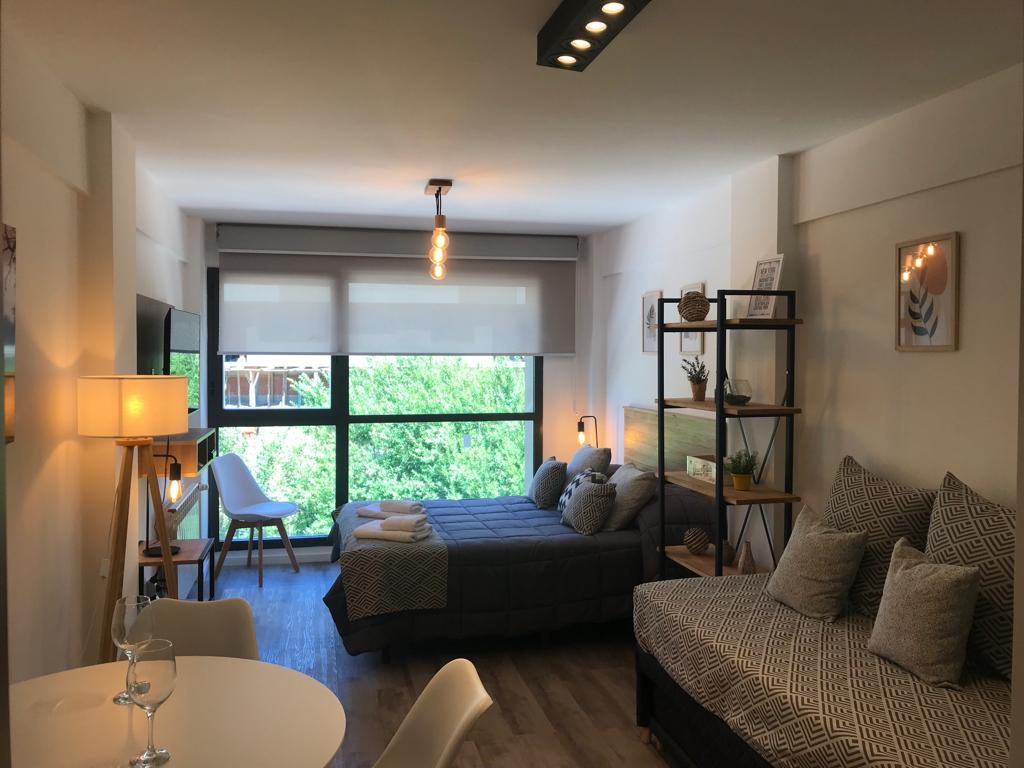 Disfrutá de una experiencia con estilo céntrico. Luminoso y cálido monoambiente de 26 m2, ubicado a 1 cuadra calle mitre y 8 cuadras centro cívico, equipado con heladera, cocina, tostadora, pava electrica y microondas. y horno eléctrico. Posee una cama matrimonial con sábanas. La cocina cuenta con vajillas y utensilios ademas de un baño completo con toalla y toallones. Hay restaurantes, farmacia, supermercado, colectivos en un radio de 5 cuadras. Check in: 16:00 Check out: 10:00