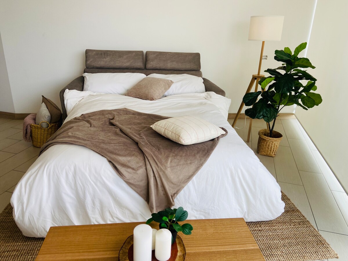 Αυτός ο ξεχωριστός χώρος είναι κοντά σε όλα, διευκολύνοντας τον προγραμματισμό του ταξιδιού σας. Βρίσκεται στο κτίριο ONE, στον 23ο όροφο, με ωραία θέα στα βουνά. Διαμέρισμα με 1 κρεβάτι queen size, 1 πλήρες μπάνιο. Μπαλκόνι με θέα στο βουνό, κουρτίνες συσκότισης, WiFi, ζε ζεστό νερό, πετσέτες, σαπούνι και σαμπουάν. Επιπλέον, πλήρως εξοπλισμένη κουζίνα, πρόσβαση στην κομψή πισίνα κοινόχρηστων χώρων, τζακούζι, κινηματογράφο, παιδικά παιχνίδια, γυμναστήριο.
