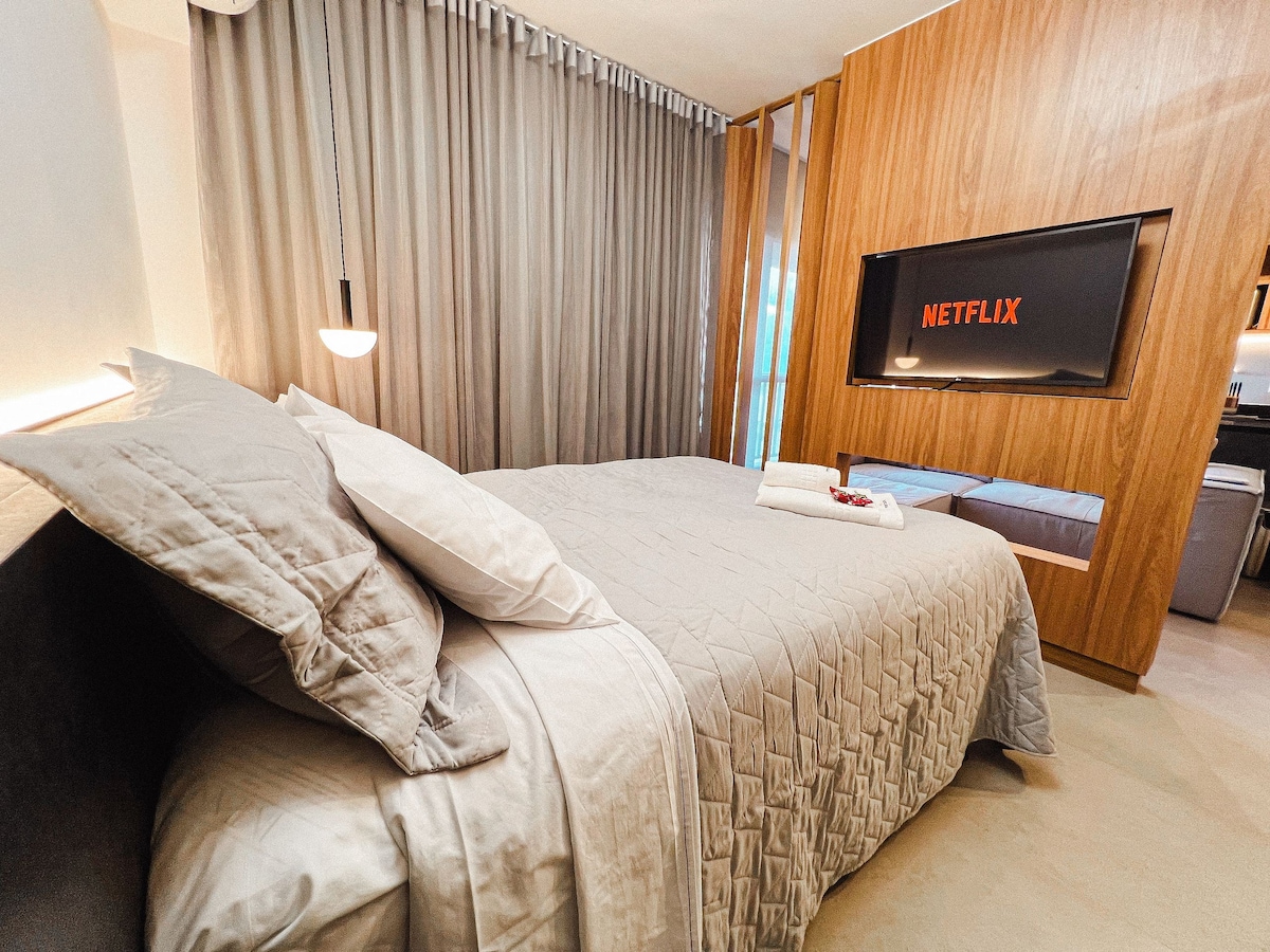 💯 Ζήστε την εμπειρία Marista Premium! Πλήρες διαμέρισμα με ξεχωριστό υπνοδωμάτιο και σαλόνι, δύο Smart TV, γρήγορο Wi-Fi και όλες τις ανέσεις που χρειάζεστε για να απολαύσετε την Goiânia με στιλ. Ιδανικό για επαγγελματικά ταξίδια ή ταξίδια αναψυχής. Ενεργοποιήστε τον κλιματισμό και την τηλεόραση με φωνητική εντολή και ακούστε τη μουσική σας μέσω της Alexa και απολαύστε τον γαστρονομικό πόλο του Marista Sector και του σύγχρονου Bueno Sector στην καλύτερη περιοχή της Γκοϊάνια! Blend Smart Style Condominium Creation ®️Renovato Residences