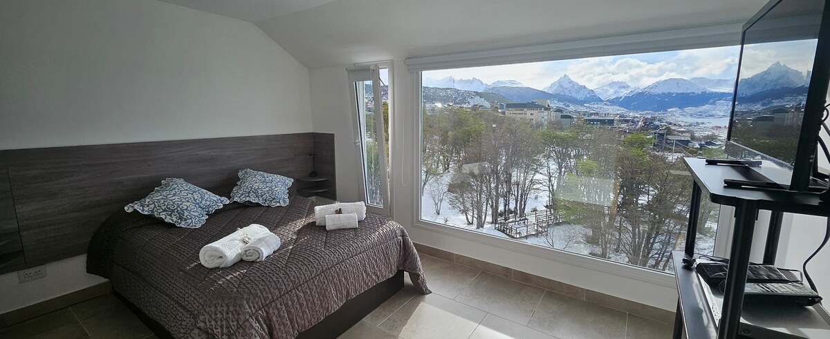 Απολαύστε την Ουσουάια με έναν μοναδικό τρόπο, μένοντας σε αυτό το όμορφο ημιδιαμέρισμα, στο κέντρο και με ασυναγώνιστη θέα στο κανάλι Μπίγκλ. Διαθέτει δύο ευρύχωρα δωμάτια, και τα δύο με έξυπνη τηλεόραση, μια μεγάλη κουζίνα-τραπεζαρία πλήρως εξοπλισμένη με λεπτά πιάτα. Διαθέτει επίσης 2 μπάνια, ένα καθημερινό και ένα με μπαντιτάνιο μπάνιο. Η ιδιοκτησία συμπληρώνεται από ένα ευρύχωρο σαλόνι, με πολυθρόνες, καλωδιακή τηλεόραση, και ένα απίστευτο μπαλκόνι από όπου μπορείτε να δείτε τον κόλπο της Ουσουάια και όλα τα όμορφα νησιά της σε πρώτη σειρά.