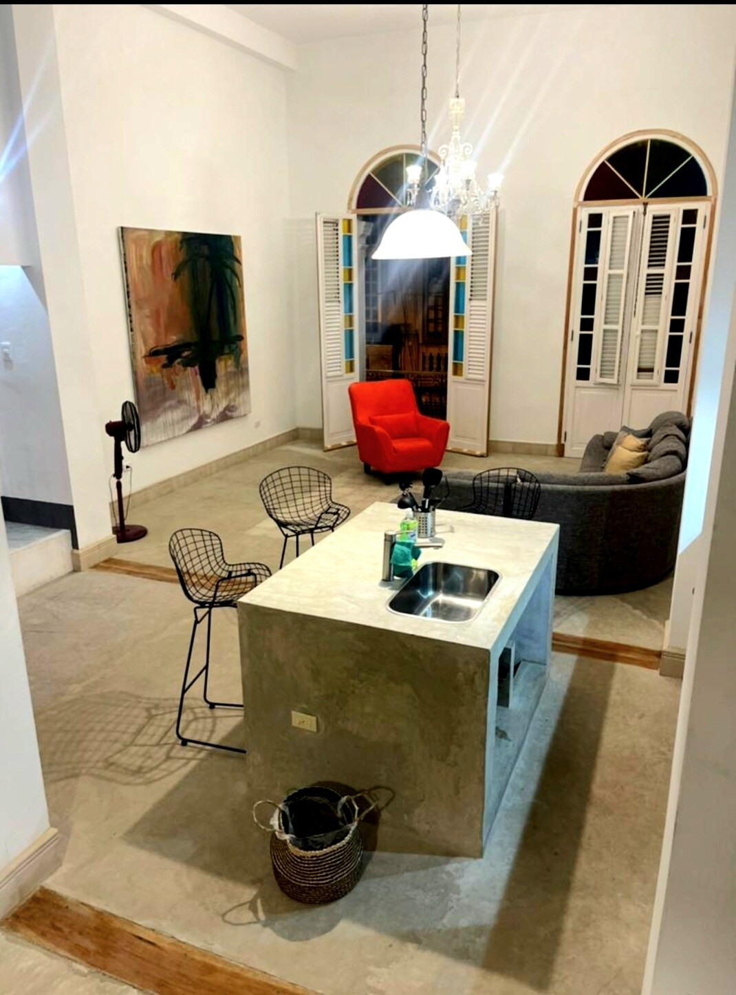 Η όμορφη σοφίτα μας βρίσκεται στον τελευταίο όροφο ενός νεοκλασικού κτιρίου στην καρδιά του μοντέρνου καλλιτεχνικού Vedado, σε απόσταση λίγων μέτρων από μοντέρνα εστιατόρια, νυχτερινά κέντρα διασκέδασης, Hotel Nacional, Malecón και 5 λεπτών οδικώς από την Παλιά Αβάνα. Σχεδιασμένος γύρω από μια σύγχρονη ερμηνεία της αποικιακής αρχιτεκτονικής, ο ανοιχτός χώρος ύψους 5 μέτρων διαθέτει ημιώροφα επίπεδα που εκτείνονται από τη μία πλευρά του διαμερίσματος στην άλλη και μεγάλες βεράντες στον τελευταίο όροφο με τραπεζαρία/ξαπλώστρες που προσφέρουν εκπληκτική θέα στην Αβάνα.