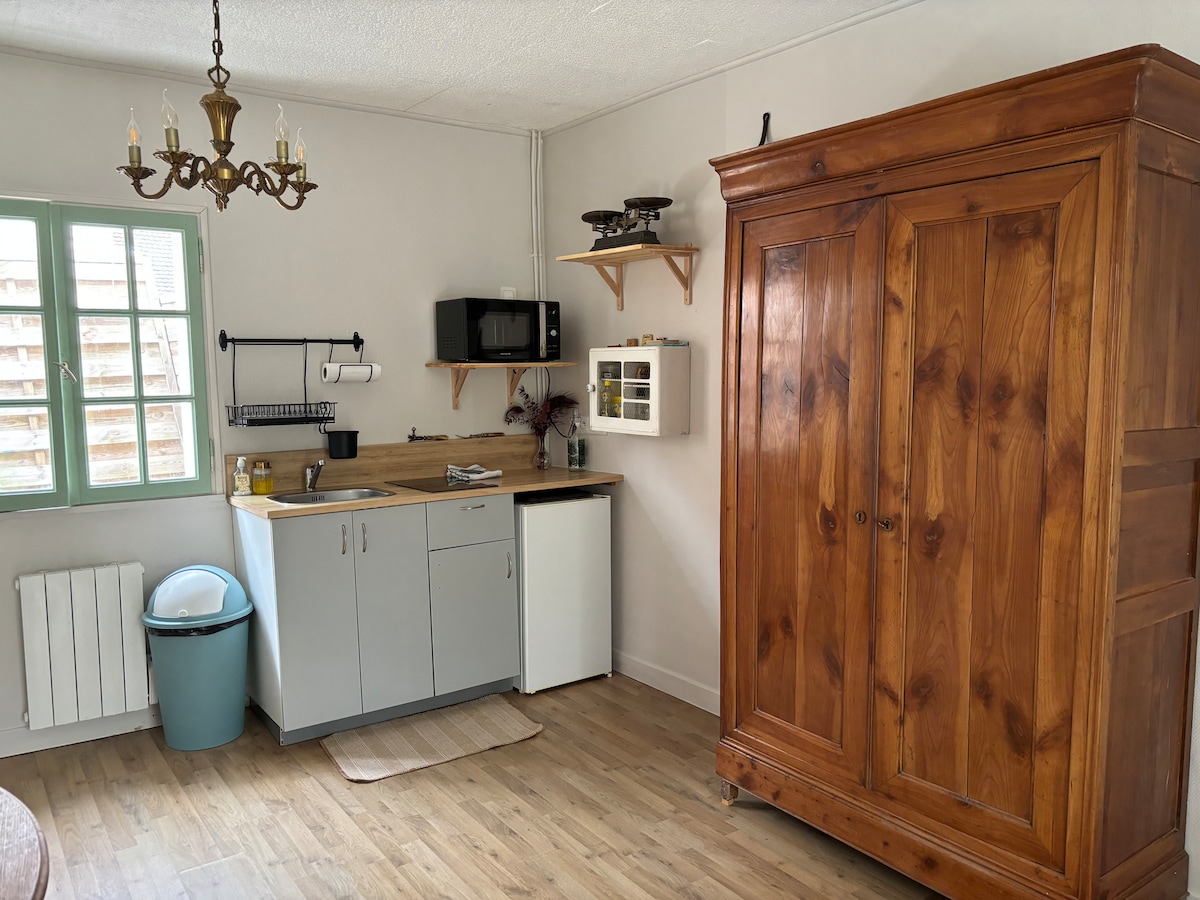 Σας καλωσορίζουμε στο γοητευτικό μας στούντιο (15 τ.μ.) με όλες τις απαραίτητες ανέσεις: Ο χώρος ύπνου διαθέτει κρεβάτι, τηλεόραση και Wi-Fi. Η κουζίνα είναι εξοπλισμένη με ψυγείο, φούρνο μικροκυμάτων και φριτέζα αέρα. Το κατάλυμα είναι δίπλα στο σπίτι μας αλλά εντελώς ανεξάρτητο. Βρίσκεται πάνω από το γκαράζ και είναι προσβάσιμο από τον κήπο. Για τη στάθμευση, έχετε στη διάθεσή σας έναν δημόσιο και δωρεάν χώρο στάθμευσης. Ο σιδηροδρομικός σταθμός είναι προσβάσιμος με τα πόδια (20 λεπτά).