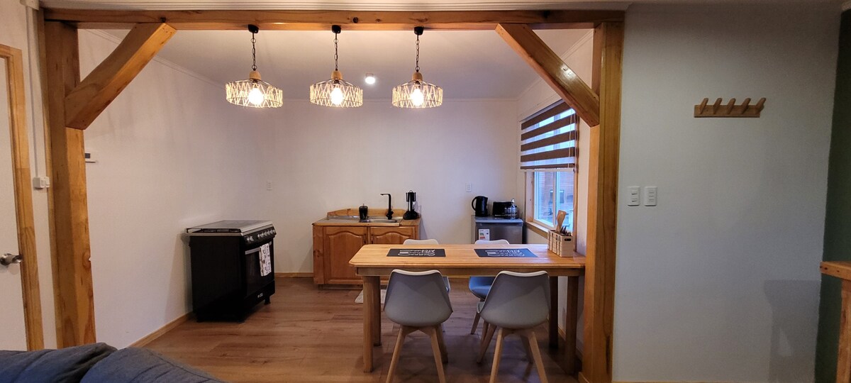 Monoambiente de 18 m² construido en 2022, cómodo, cálido y completamente equipado. Cuenta con baño privado, cocina equipada y calefacción central, ideal para el clima patagónico. Ubicado en sector residencial seguro, a 15 min caminando del Mirador Cerro de la Cruz y 25 min de la Plaza de Armas. Recinto con sala de espera 24/7, guarda equipaje gratuito y minimarket. Gimnasio disponible con costo adicional previa reserva.