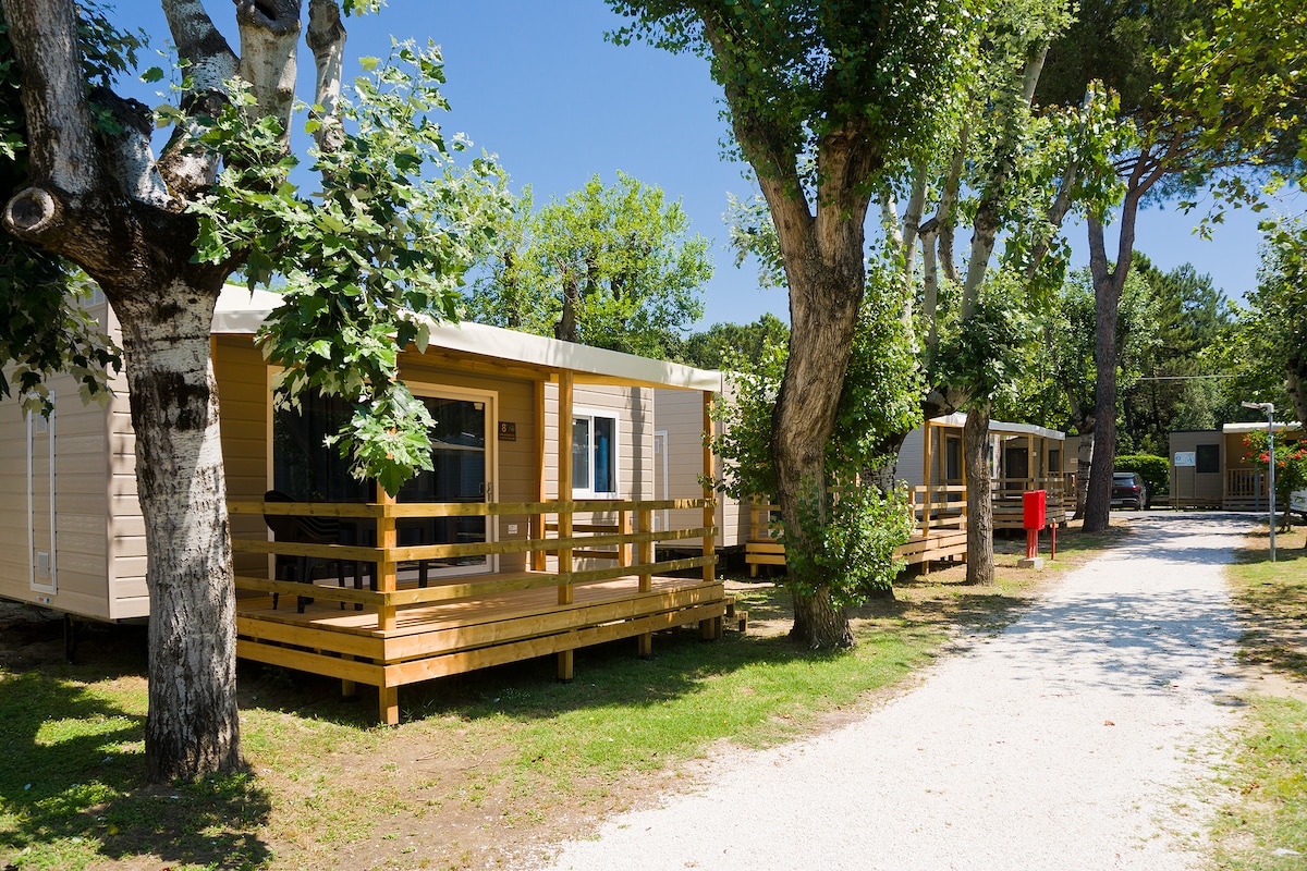 Βρίσκεται βόρεια του κάμπινγκ κάτω από ένα πυκνό πευκοδάσος: η ιδανική επιλογή για τις διακοπές σας. - Επιτρέπονται τα γεύματα - Ξύλινο παράθυρο με τραπέζι και καρέκλες και καρέκλες κήπου - Σαλόνι με εξοπλισμένη μικρή κουζίνα -Υπνοδωμάτιο με 1 υπνοδωμάτιο με διπλό κρεβάτι -1 δωμάτιο με 2 μονά κρεβάτια (μονάδα προσβασιμότητας) -1 μπάνιο με ντους, νιπτήρα - Ξεχωριστή τουαλέτα -Τηλεόραση και κλιματισμός