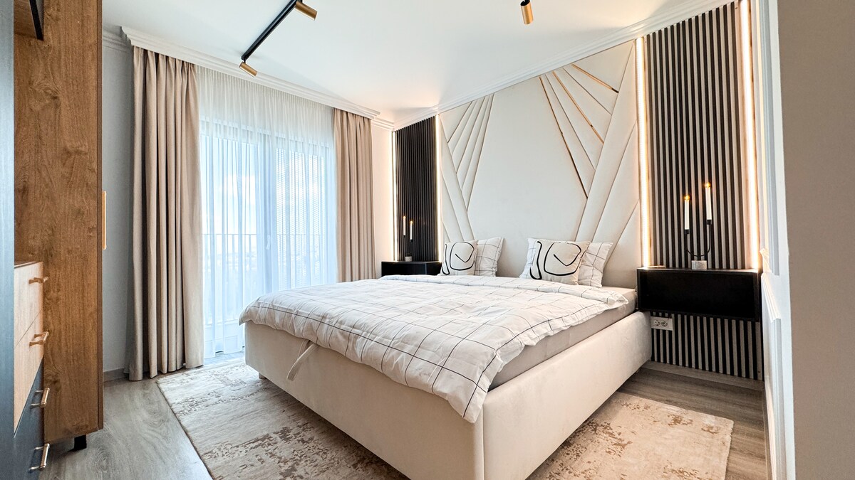 The apartment has a modern, welcoming design in warm colors specially designed to offer a feeling of comfort and peace. It is located in the ultra-central area, the central park being located at the exit of the block. In the immediate vicinity are numerous institutions such as the Prefecture, the Prosecutor's Office, the Court, the Central Library and Dom Polski, branches of existing banks in Romania, the Museum of History, the Museum of Nature, the Monastery of St. John (all 2-5 min walk)