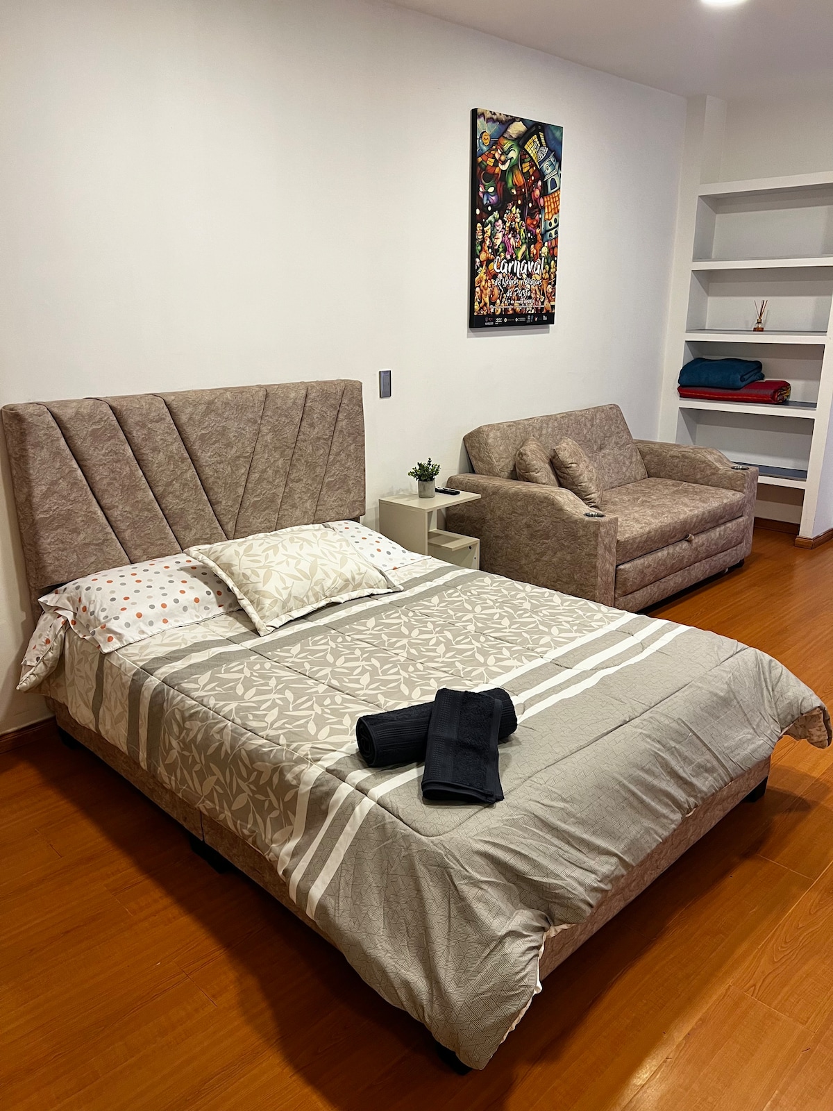 Tenemos para ti este espectacular apartamento. Dotado de todo lo que necesitas para tu estadía en nuestra ciudad! Contamos con 1 cama doble, 1 sofá cama, baño y cocina! Es un lugar tranquilo pero sobretodo ubicado en un lugar excepcional, como es el centro de Pasto, a pocos metros de las iglesias más emblemáticas de la ciudad, de la zona financiera, del Parque Nariño, de la Gobernación, de restaurantes, centros comerciales , supermercados y Clínicas!!!