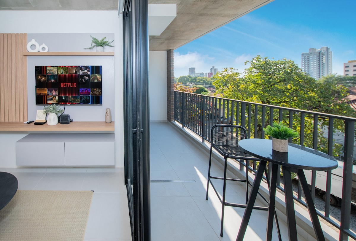 Στούντιο 29m² με ιδιωτικό μπαλκόνι * 3 λεπτά με τα πόδια από καφετέριες, εστιατόρια και εμπορικό κέντρο * Πλήρως εξοπλισμένο για μια άνετη διαμονή. * Ειδικός χώρος εργασίας * 200 Mbps Wi-Fi * 1 Smart TV * Καφετιέρα Drip * Πλυντήριο στο κατάλυμα + Απλώστρα ρούχων * Θυρωρός 24 ώρες το 24-ωρο * Χώρος στάθμευσης για 1 αυτοκίνητο {add amenities} * Πισίνα * 2 μπάρμπεκιου / αίθουσα εκδηλώσεων (1 εξωτερική και 1 κλιματιζόμενη) * Γυμναστήριο * Κινηματογράφος * Χώρος εργασίας / Συνεργατικός χώρος