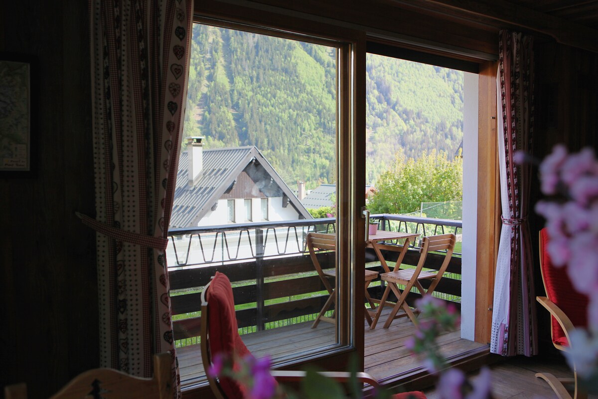 Ελάτε να απολαύσετε αυτό το γραφικό διαμέρισμα ενός υπνοδωματίου με εκπληκτική θέα στο Λευκό Όρος! Είναι ένα σκι-ιν σκι-άουτ, πολύ σπάνιο στο Σαμονί: - Το τελεφερίκ συνδέεται με τις πίστες Brevent / Flegere, προς τα νότια με θέα την υπέροχη οροσειρά του Λευκού Όρους! - Μπροστινές πίστες σκι για αρχάριους (σχολή σκι ESF). - Η κατοικία βρίσκεται στην πολύ εκτιμώμενη περιοχή Savoy, 5 λεπτά με τα πόδια από τον κεντρικό δρόμο του Σαμονί. Ιδανικό για 2/3 ενήλικες ή ένα ζευγάρι με παιδιά Σταθμεύστε το αυτοκίνητό σας μόνο μία φορά και χαλαρώστε στο μαγευτικό ορεινό τοπίο!
