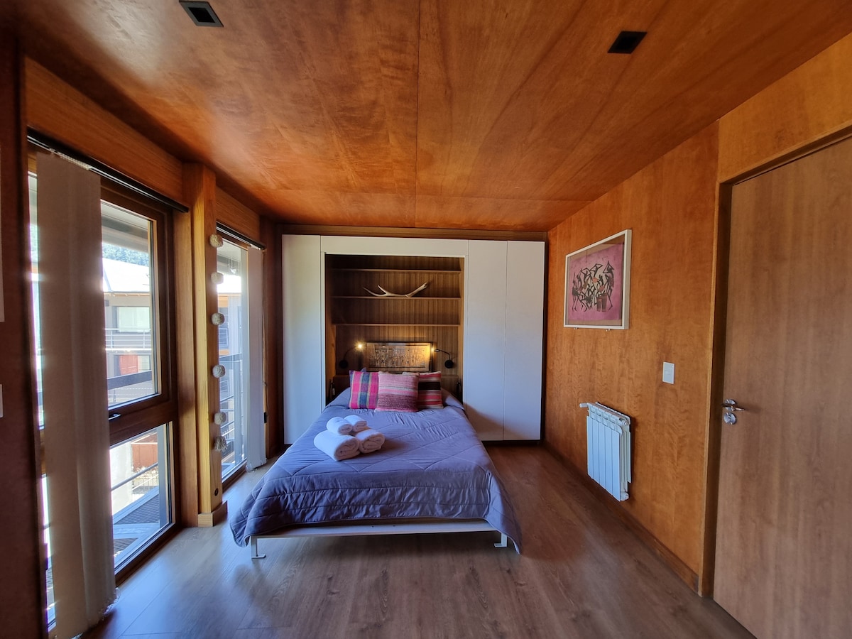 Φανταστείτε να βρίσκεστε σε ένα τζακούζι βλέποντας το χιόνι να πέφτει μετά από μια μέρα σκι. Αυτή η μοναδική εμπειρία σας περιμένει σε αυτό το σπίτι που θα σας κόψει την ανάσα με τη μαγευτική θέα. Βρίσκεται στο Chapelco Golf, στη μέση των βουνών, αλλά μόλις 1000 μέτρα από το πολυτελές ξενοδοχείο Loi Suites, με εξαιρετική κουζίνα. Επιπλέον, η γειτονιά προσφέρει κλαμπ, γήπεδα τένις και γήπεδο γκολφ. Απέχει μόλις 15 λεπτά από το αεροδρόμιο του San Martín de Los Andes και 20 χιλιόμετρα από το εμπορικό κέντρο της πόλης