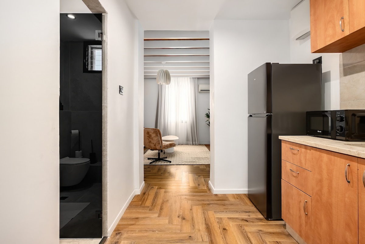 " There is a dimension inside the apartment. " Enjoy a prime location designed to fit all your needs- kitchen, living room, huge bedroom, new shower, and street parking. This 1-bedroom apartment is just 2 min walk from the vivid Flea market and 5 min walk from the beach. This is a great opportunity to stay at the heart of Jaffa and be close to all the hot spots of the area! Less than 10 min drive from the center of Tel Aviv and will be able to enjoy both old Jaffa and amazing TLV.