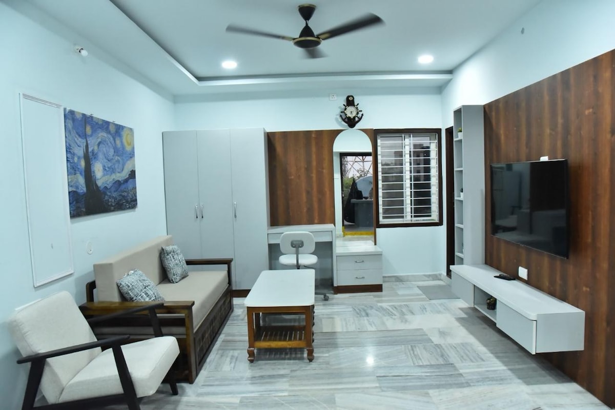 Ένα στούντιο προσεκτικά σχεδιασμένο από εμένα, που προσφέρει απόλυτη κομψότητα και λειτουργικότητα, που σας κάνει να νιώθετε σαν στο σπίτι σας και άνετα. 24 ώρες άνδρας/γυναίκα φύλακας Σύντομος περίπατος: ΕΣΤΙΑΤΟΡΙΑ Στάσεις λεωφορείων Είστε απλώς: 15 λεπτά - HYD City Centre 19 λεπτά - Αεροδρόμιο (RGIA) 26 λεπτά - Hitech City / Financial Dist. / US Emb Η διαμονή σας περιλαμβάνει: Πάρκινγκ Σνακ Κρύα/ζεστά ροφήματα Πετσέτες Ιδιωτικό μπάνιο Θερμοπίδακας Απαγορεύονται τα έντομα Υπηρεσία καθαριότητας Ψυγείο Ηλεκτρικός βραστήρας Κλιματιστικό 24ωρη εφεδρική ηλεκτρική ενέργεια