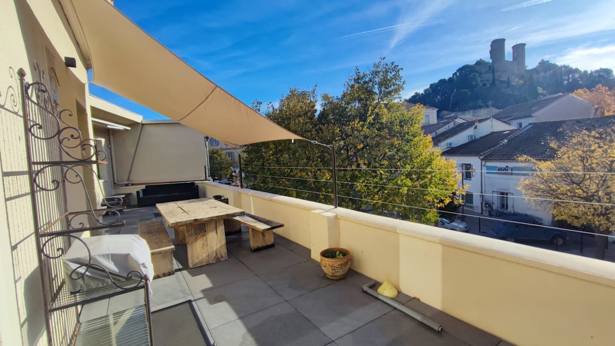 Appartement de charme dans un château avec vue exceptionnelle sur Avignon.
