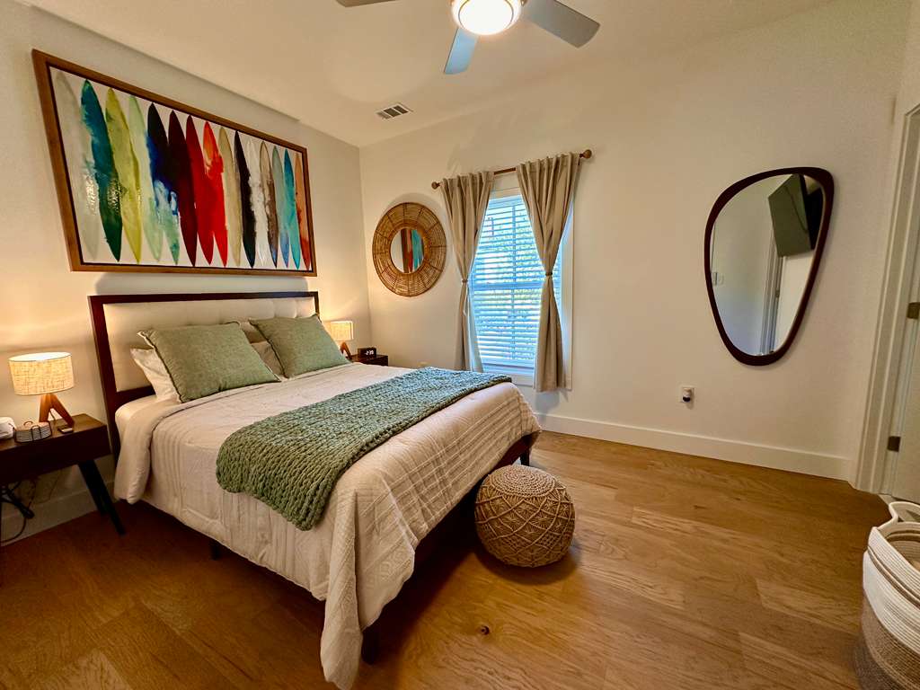 Stay directly on Forsyth Park — not “near” it, but truly steps away. Walk out the door, cross the street, and you’re instantly in the Fragrant Garden, with the iconic Forsyth Fountain just one block beyond. Circa 1898, this romantic Victorian studio features 12-foot ceilings, beautiful heart pine floors, and a king canopy bed (Tuft & Needle) designed for dreamy Savannah evenings. Enjoy blackout curtains, a full bath with tub/shower, a cozy full kitchen, and a small futon for a third guest.