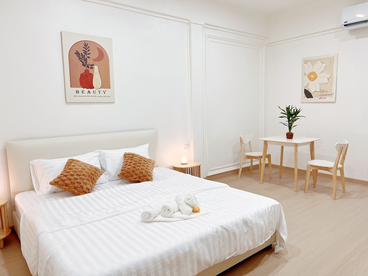 A newly renovated Studio room with 1 super comfy king-bed size, ensuite bathroom, mini pantry area with microwave, refrigerator. Only 450 meters to BTS Sanam Pao and 650 meters to BTS Ari. ** Kindly read "Other Things to Note" section before you make a reservation :)