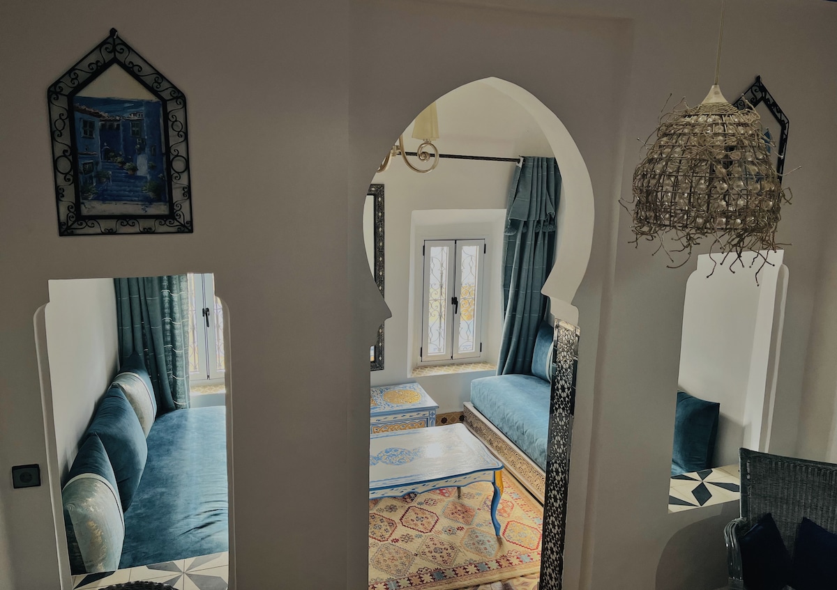 Αποδράστε στο γοφιστικέ διαμέρισμά μας στην καρδιά του Chefchaouen, που προσφέρει τον τέλειο συνδυασμό άνεσης και γραφικής ομορφιάς. Αυτό το άνετο καταφύγιο διαθέτει έναν όμορφα διακοσμημένο χώρο διαβίωσης με σύγχρονες ανέσεις και αυθεντικές μαροκινές πινελιές. Χαλαρώστε στο άνετο υπνοδωμάτιο και ξυπνήστε με εκπληκτική θέα στα βουνά Ριφ. Ιδανικό για ζευγάρια, οικογένειες ή σόλο ταξιδιώτες. Το διαμέρισμά μας υπόσχεται μια αξέχαστη διαμονή στη μαγευτική μπλε πόλη. Κλείστε την απόδρασή σας σήμερα!