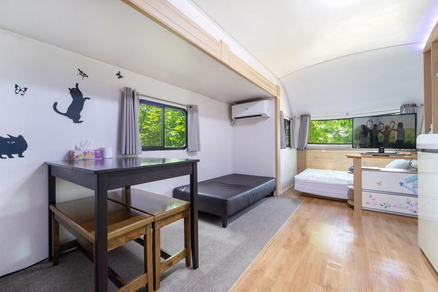 It is a Gapyeong Caravan Fairy Caravan Campground where green mountains and clear valleys flow. Νιώστε την εξωτερική πισίνα, τον κήπο με το γκαζόν, το τραμπολίνο και άλλες βοηθητικές εγκαταστάσεις και κάμπινγκ * Το δωμάτιο σε αυτήν την ιδιοκτησία είναι το τροχόσπιτο 4. Ελέγξτε τις οδηγίες για αυτό το δωμάτιο παρακάτω. * Αν έχετε επιπλέον απορίες, επικοινωνήστε με το προφίλ σας.