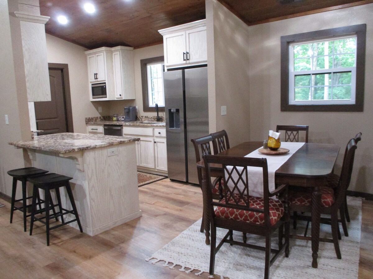 Χαλαρώστε σε αυτήν τη μοναδική και ήσυχη απόδραση, αλλά κοντά στο κέντρο της πόλης...μόνο 2 1/2 μίλια. Πιείτε τον πρωινό σας καφέ ή βραδινά κοκτέιλ στην πίσω βεράντα μας με θέα στη λίμνη. Πηγαίνετε για ψάρεμα στην ιδιωτική λίμνη και βγάλτε έξω τα καγιάκ μας. Επίσης, διαθέτουμε φουσκωτή λέμβο 4 ατόμων που μπορείτε να χρησιμοποιήσετε μαζί με 3 καλάμια ψαρέματος και σωσίβια γιλέκα. Υπάρχουν 2 ελαφριά καγιάκ μόνο για τη χρήση της λίμνης. Μόλις αγοράσαμε μια βάρκα με κουπιά 4 ατόμων. Απαιτούνται σωσίβια όταν βρίσκεστε πάνω ή μέσα στο νερό.