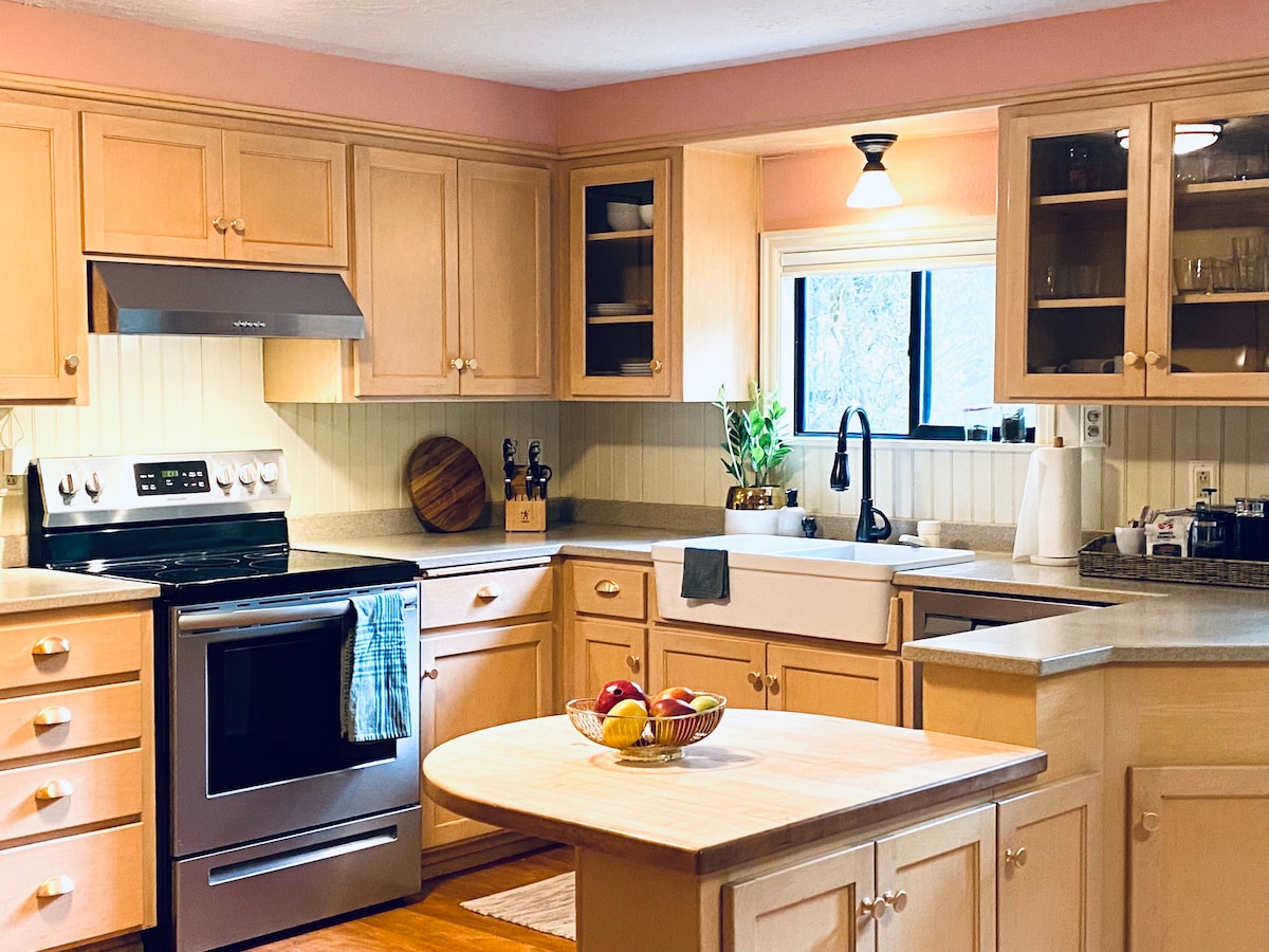 This studio has a kitchenette, sink, fridge, toaster oven, microwave, toaster, coffee and hot water maker. There is a queen bed, leather chair, dining table and chairs, a few books and some games. The bathroom has a clawfoot tub, walk in shower, and vanity sink The windows face farm/woodland views and there is a 1/2 mile woodland trail out the back door. This studio is clean with awesome artesian well water. You can park 10 feet from the door and pets are welcome, I have a $15/day pet fee.