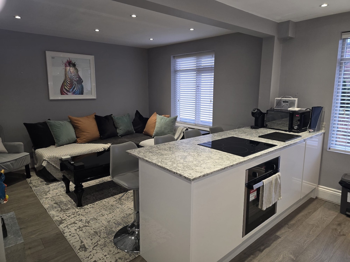 Welcome to our newly refurbished, self-contained one bedroom apartment. It's ideally situated between Chester Zoo (10-15 mins walk) and Cheshire Oaks Designer Outlet Village (less than 5 mins drive) and also about 10-15 minute drive to Chester. It has a spacious, open-plan kitchen, lounge and dining room with a separate bedroom (with king sized bed) and large walk-in wardrobe/dressing table. It also has it's own bathroom with double shower enclosure, toilet and sink. Parking spaces for 2 cars.