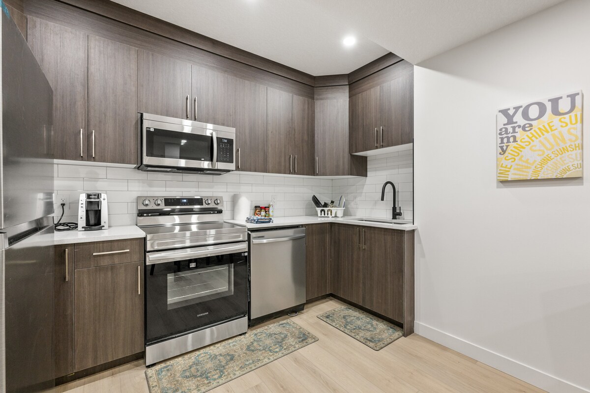 Unwind in this modern private guest suite just 3 minutes from a scenic lake, golf course, main beach & local dining. Only 20 minutes from Calgary Airport and Downtown Calgary, it’s ideal for both relaxation and convenience. ✔ Sleeps up to 6 | 3 Beds & 1 Bath ✔ Fully equipped kitchen with stove & Keurig coffee machine ✔ Comfortable bedrooms ✔ Cozy modern living room with high ceilings ✔ TV with Netflix & Amazon Prime ✔ Bar-top dining, high-speed Wi-Fi & in-suite laundry ✔ Private entrance