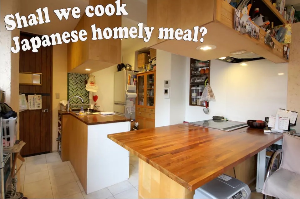 典型日本三层独栋一户建,五个房间,三个卫生间间,两个洗澡间。一个厨房餐厅。可同时容纳10个人居住,适合家庭及小团体出行! 一楼是一间大约10平方左右榻榻米房间,和一间两米大床房间,两房之间有一个小客厅。 二楼是一间大约12平方米的榻榻米房间,一个厨房餐厅,可以做饭,炊具全。 三楼一间是2张单人床房间。一间是一张135米宽的双人床房间。 每个楼层都有卫生间和洗面台,两个洗澡间分别在一楼和二楼。 有一个小庭院,有专门的吸烟场所! 房子旁边有两个免费停车位,可停两辆10人座以下的车型!