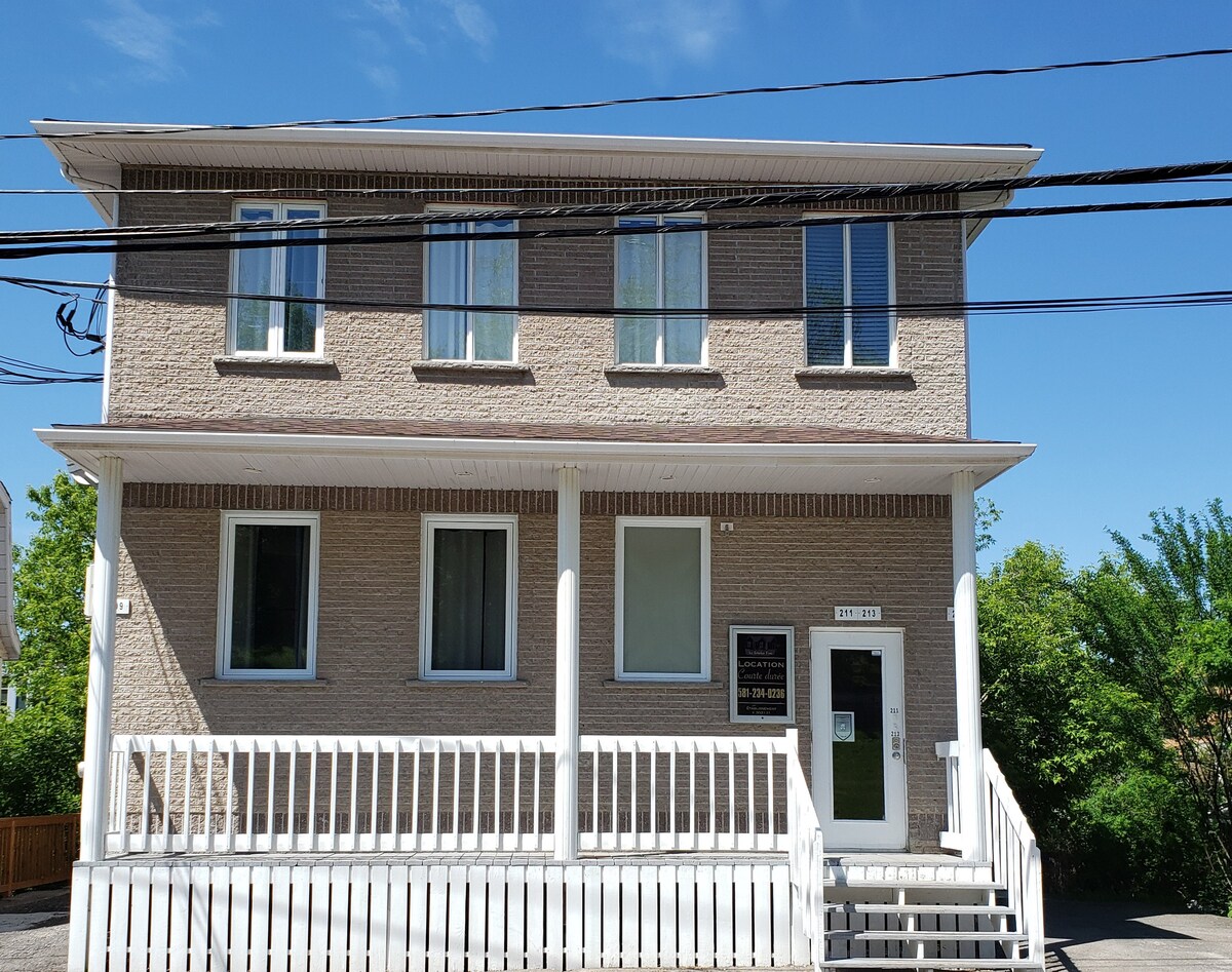 Cet appartement est proche de tous les sites et commodités. Rez-de-jardin en entier, sans escaliers. Wifi fibre optique jusqu'à 500 MB/s. À 5 minutes à pied de la rivière et d'une passerelle, situé au centre-ville, près des restaurants et bars. Il n'y a pas d'air climatisée mais puisque les fondations sont en béton, ce logement reste frais pendant l'été. SVP Indiquez 7 personnes dans la réservation afin d'avoir des draps pour le sofa-lit. CITQ #282586
