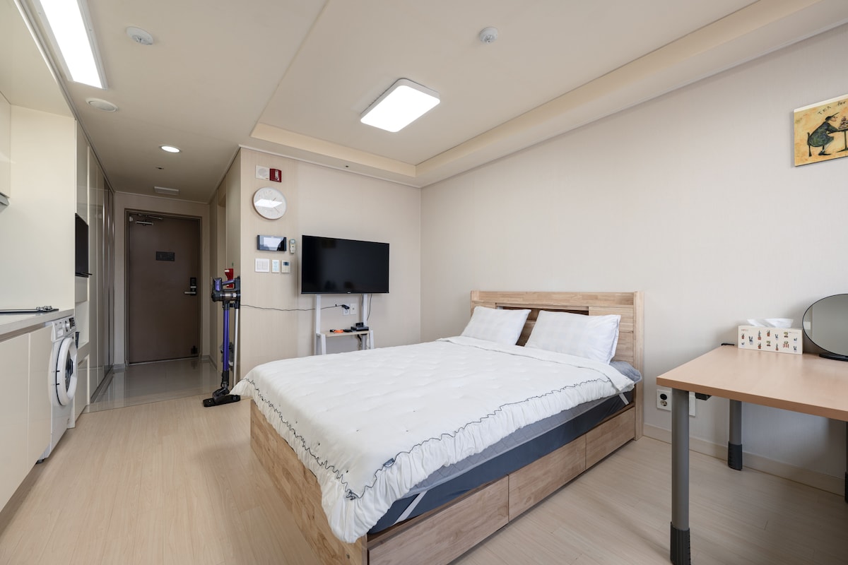 Είναι ένα εγκεκριμένο κατάλυμα που συμμορφώνεται με τα πρότυπα του νόμου περί διαχείρισης της υγείας της πιστοποίησης της πόλης της❗ Νταεγκού (άρθρο 2 παράγραφος 1 σημείο 1). Ο έλεγχος ηλεκτρικής ασφάλειας ολοκληρώθηκε! Πλήρης σετ κλινοσκεπασμάτων❗ ξενοδοχείου (αντικαθίστανται καθημερινά με καθαρά κλινοσκεπάσματα) ❗Smart TV Netflix Ασύρματο ενσύρματο Wi-Fi Συσκευή ❗σιδερώματος, μπιντέ, σετ κλινοσκεπασμάτων, κλιματιστικό, ενσωματωμένο πλυντήριο ρού (παρέχεται απορρυπαντικό πλυντηρίου). Παρέχονται ❗προϊόντα μπάνιου (οδοντόβουρτσα, οδοντόκρεμα, σαμπουάν, μαλακτικό, υγρό σαπούνι, αφρός καθαρισμού, 2 πετσέτες ανά άτομο) ❗Στεγνωτήρας μαλλιών, ισιωτής, χτένακτάκι ❗Είναι δυνατή η εύκολη μαγειρική 2 εστίες επαγωγικής κουζίνας, κατσαρόλα, τηγάνι, πλήρης σετ πιάτων, ποτήρια κρασιού, ποτήρια σότζου, ποτήρια μπύρας, κούπ. Μπορείτε να χρησιμοποιήσετε φούρνο μικροκυμάτων Υπάρχει καφετιέρα Ανοιχτήρι κρασιού 👌 ❗Καινούριο κτίριο 24ωρη ασφάλεια Πλήρως ❗εξοπλισμένο με μίνι κουτί πρώτων βοηθειών Κοντά σε👣 σταθμό του μετρό και με πολλά αξιοθέατα και φαγητά γύρω Είναι πολύ καλό για ταξίδια Είναι εύκολο να μετακινηθείτε οπουδήποτε, καθώς βρίσκεται στο κέντρο της Νταεγκού. Είναι ένα νέο γραφείο, οπότε είναι άνετο ^ _ ^